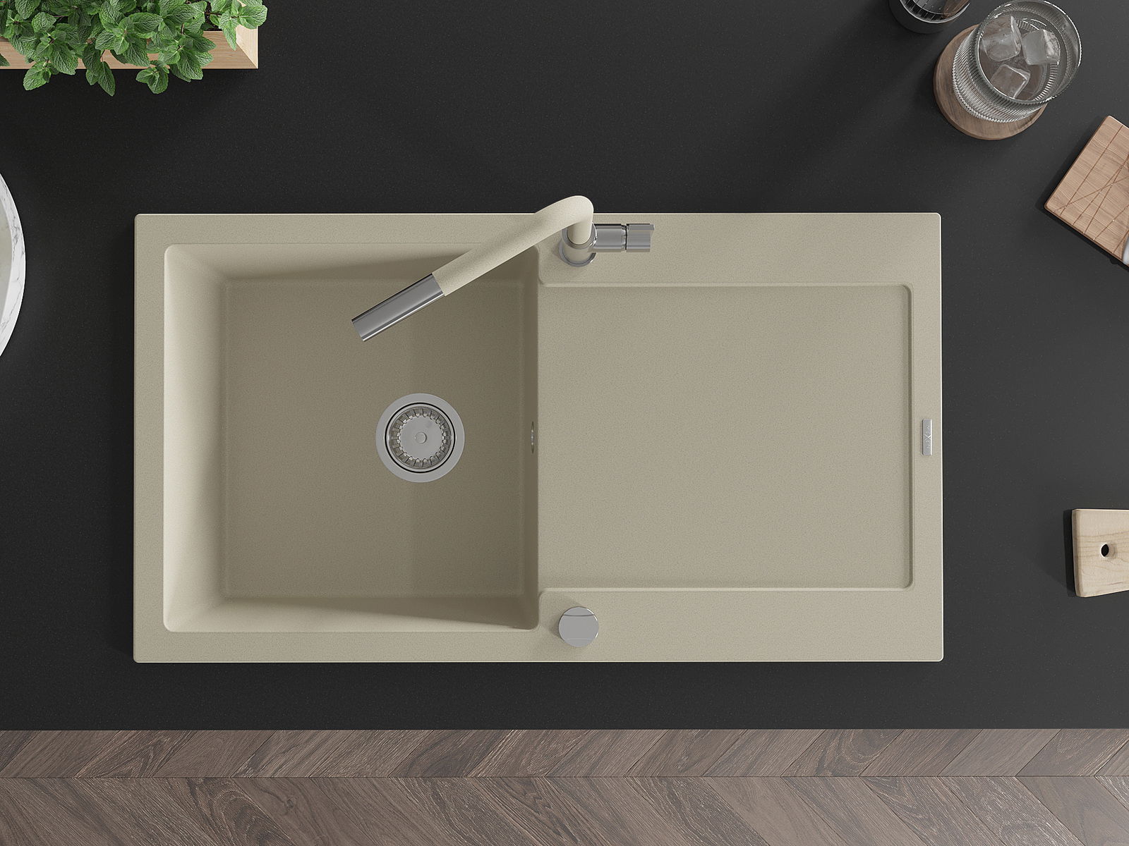 El fregadero está hecho de granito de alta calidad. Es un complemento elegante y, sobre todo, práctico para cualquier cocina, independientemente de su estilo. La alta calidad y durabilidad del granito aseguran un uso prolongado durante años.