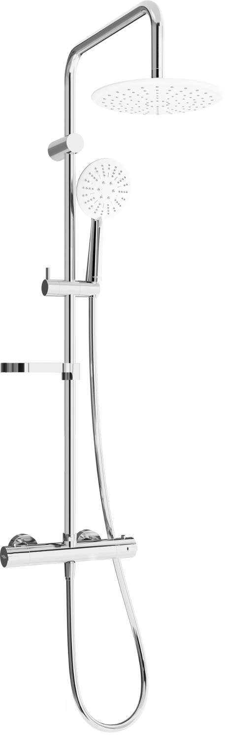 Chorro de agua estándar que imita la lluvia natural. Las gotas fluyen uniformemente sobre el cuerpo, envolviéndolo con una agradable sensación de hidratación y permitiendo sumergirse en una experiencia relajante y reconfortante para los sentidos durante el baño diario.