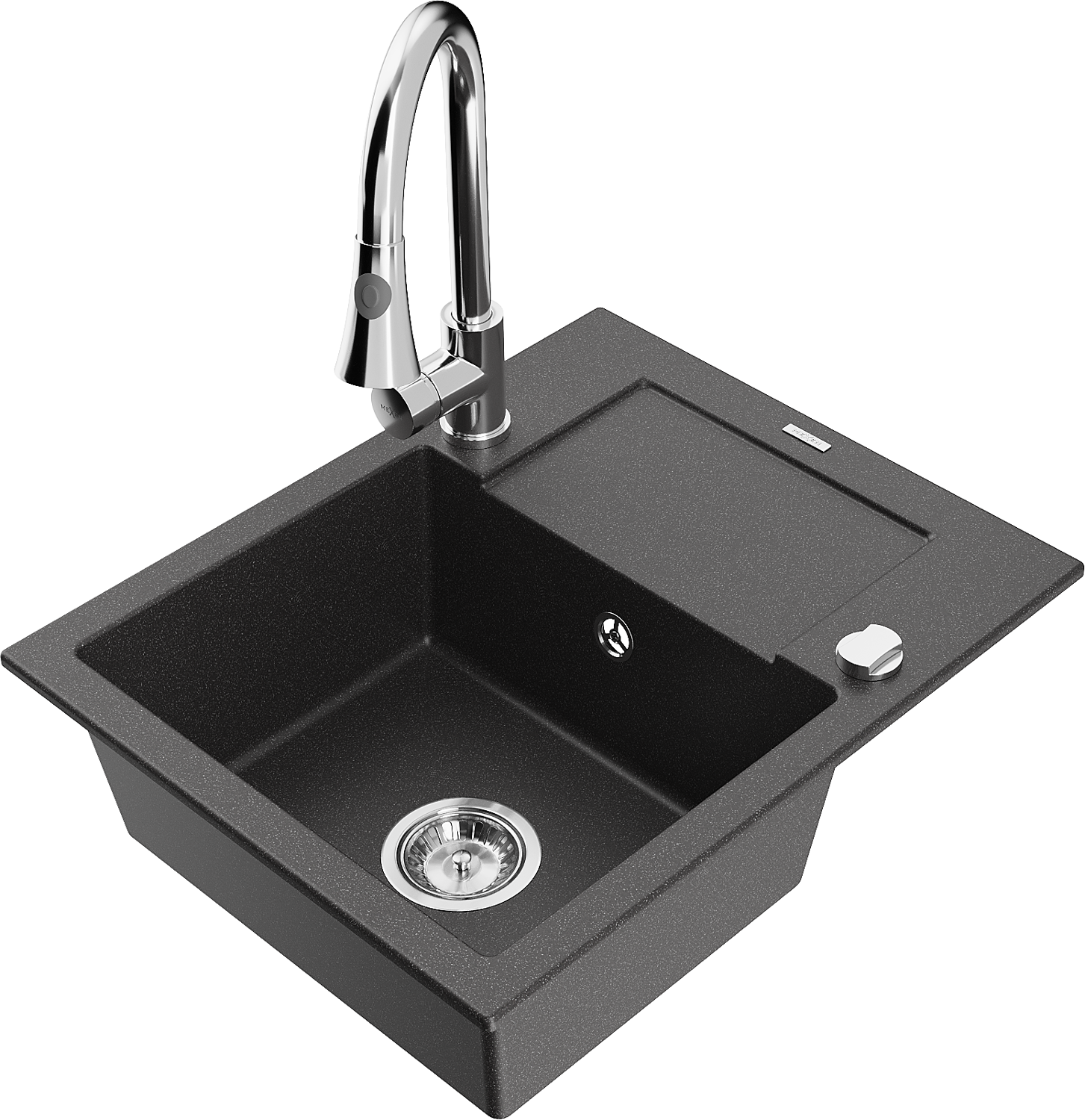 Mexen Enzo fregadero de granito de 1 seno con escurridor y grifo de cocina Elia, negro moteado - 6506-76-670101-00
