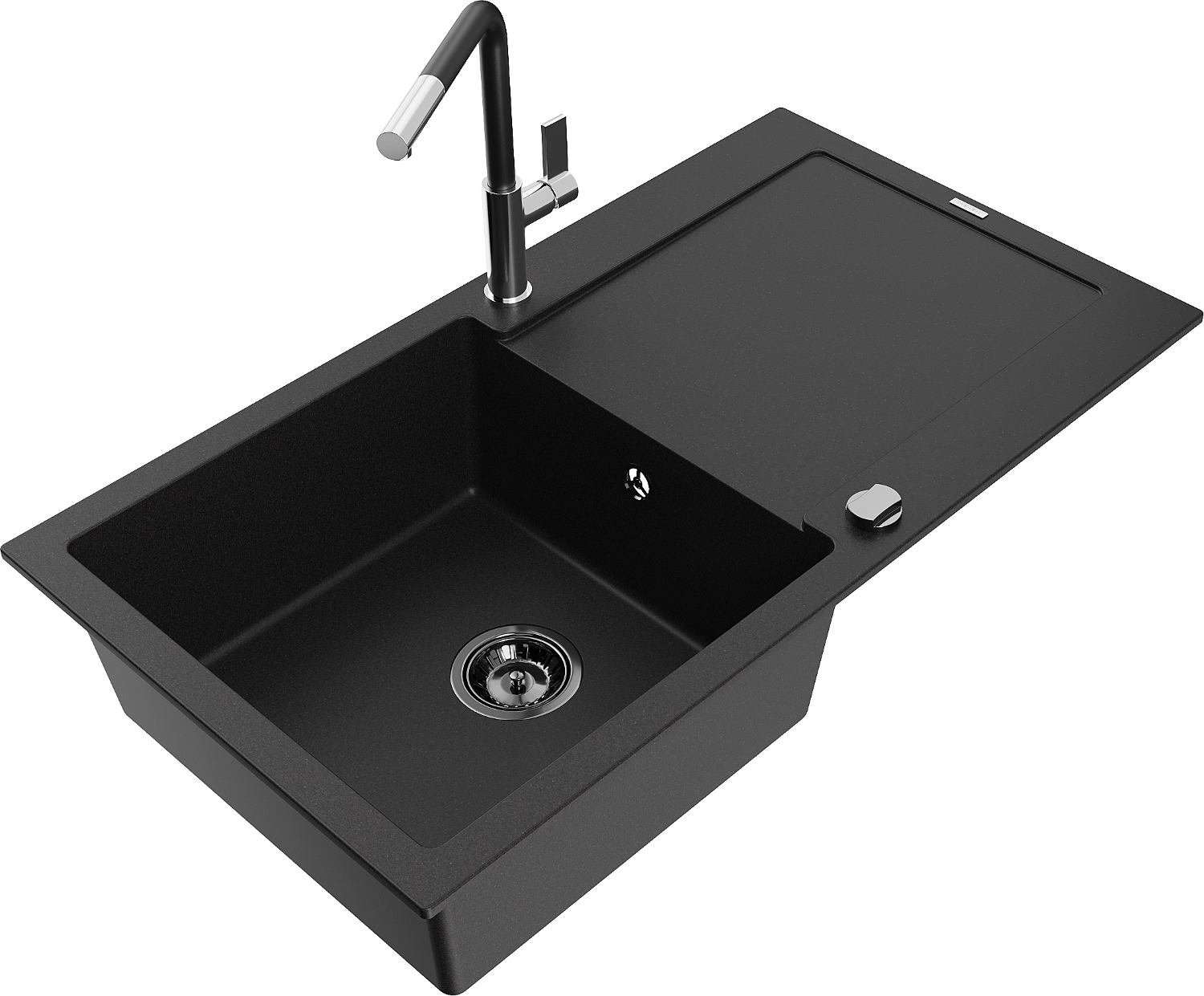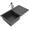 Mexen Leo fregadero de granito de 1 cubeta con escurridor y grifo de cocina Flora, negro - 6501-77-670401-07-B