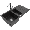 Mexen Matias fregadero de granito de 1,5 senos con escurridor y grifo de cocina Flora, negro - 6502-77-670401-00