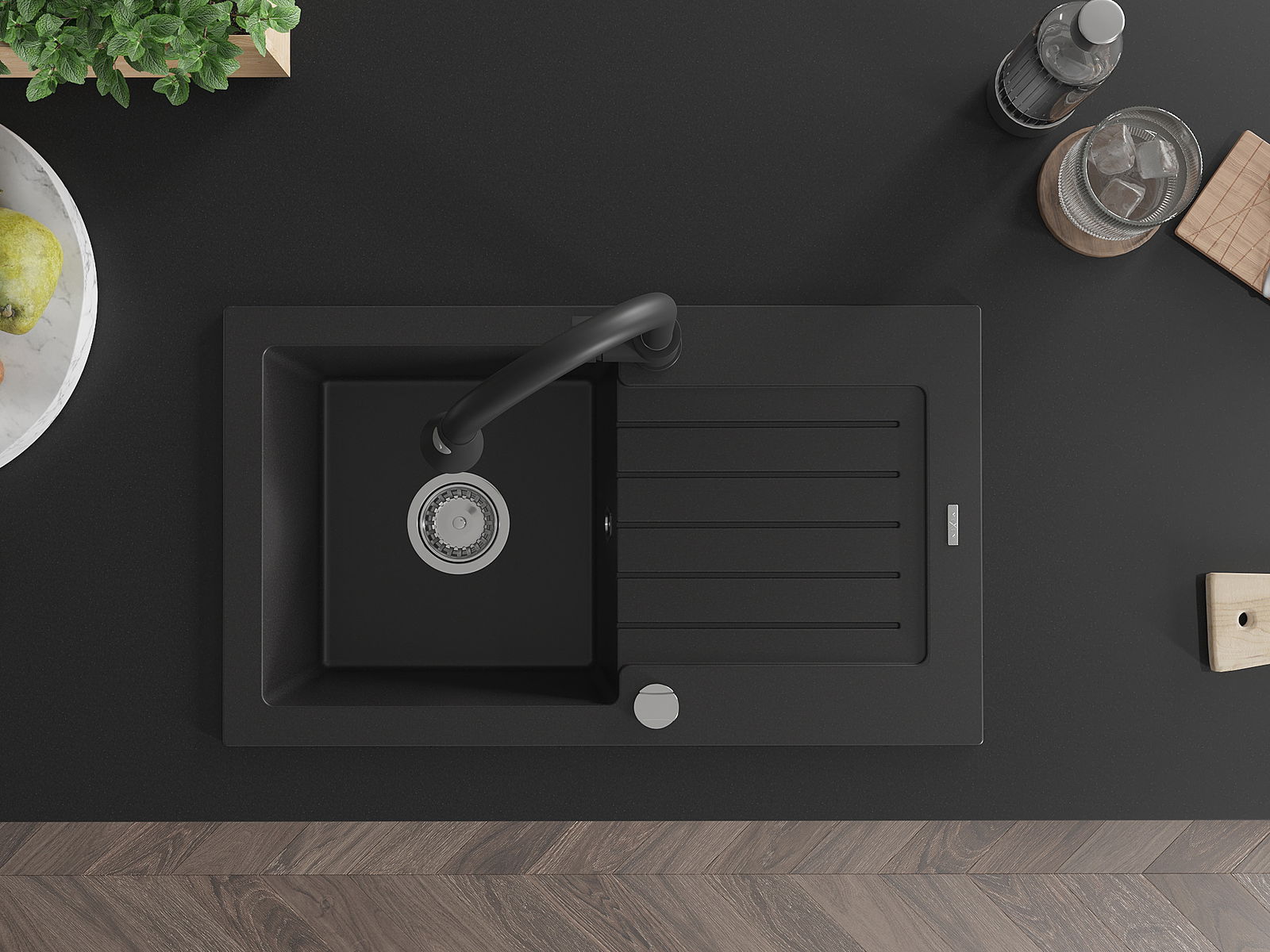 Mexen Pablo fregadero de cocina de granito de 1 seno con escurridor y grifo de cocina Elia, negro - 6510-77-670101-70
