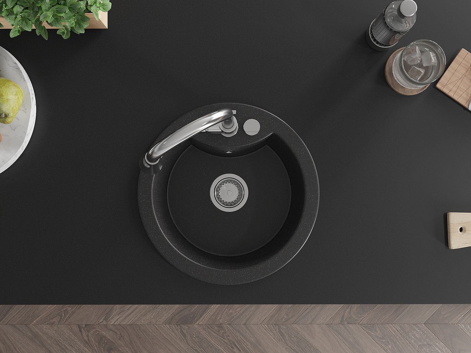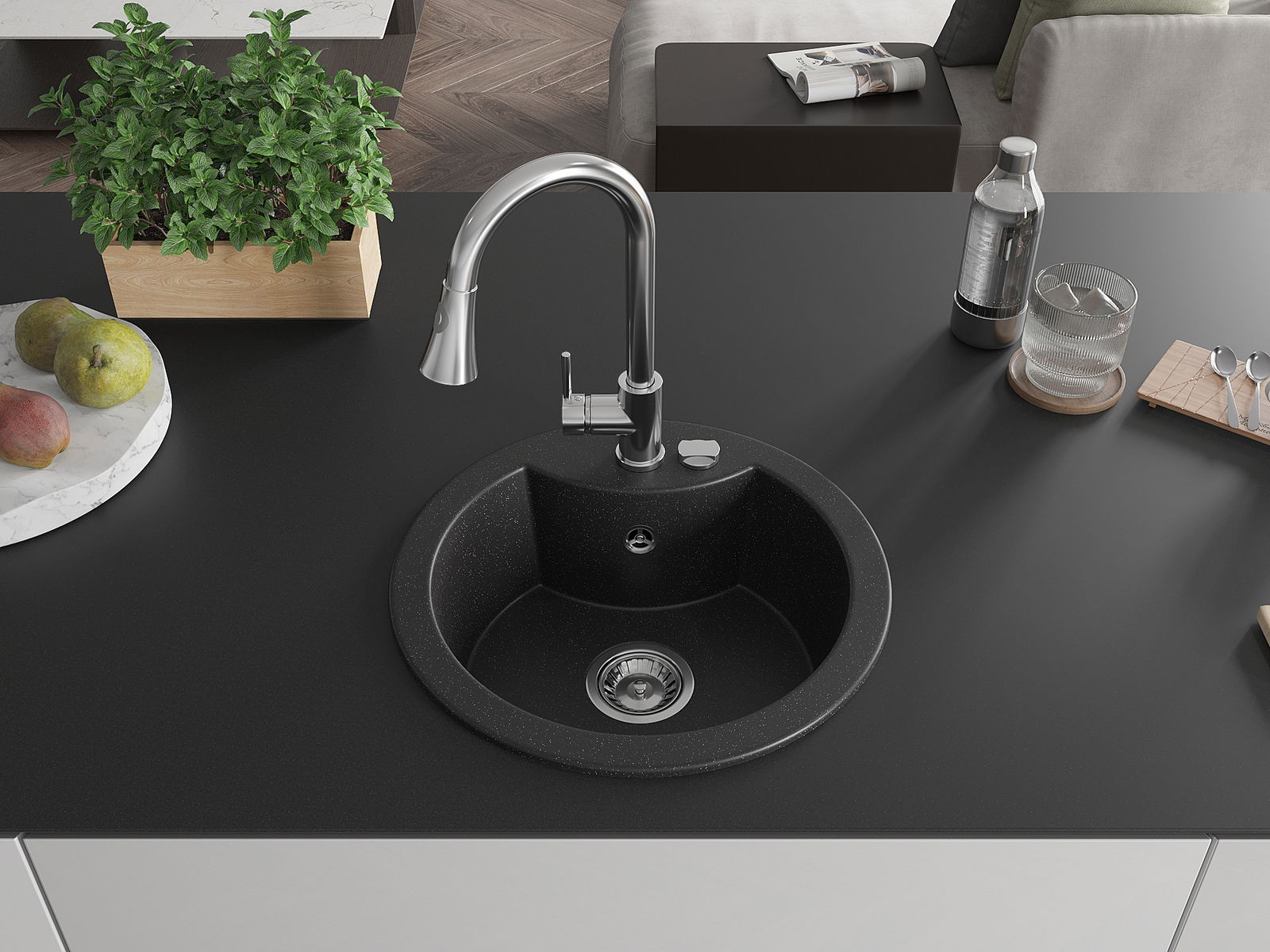 El fregadero está hecho de granito de alta calidad. Es un complemento elegante y, sobre todo, práctico para cualquier cocina, independientemente de su estilo. La alta calidad y durabilidad del granito aseguran un uso prolongado durante años.