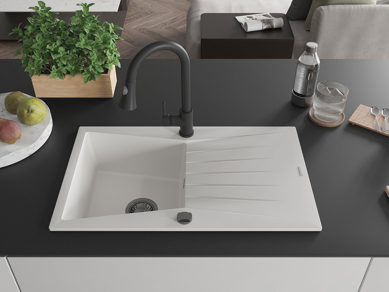 El fregadero está hecho de granito de alta calidad. Constituye un complemento elegante y, sobre todo, práctico para cualquier cocina, independientemente de su estilo. La alta calidad y durabilidad del granito aseguran un uso durante muchos años.