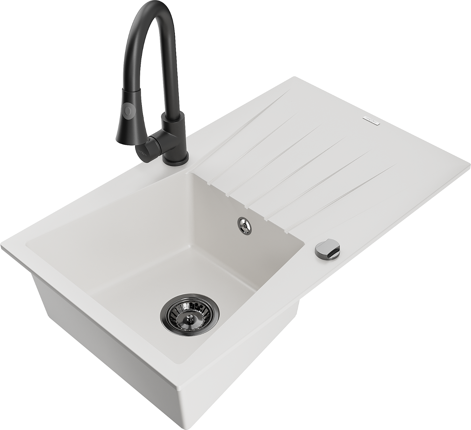 Mexen Cesar fregadero de granito de 1 seno con escurridor y grifo de cocina Elia, blanco - 6514-20-670101-70