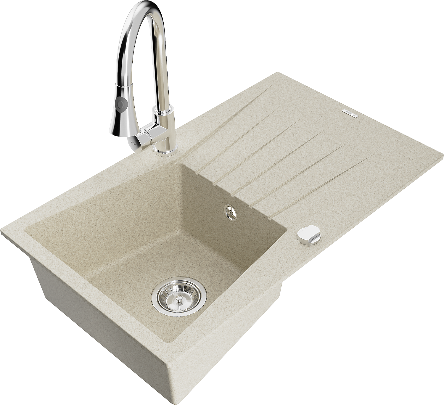 Mexen Cesar fregadero de granito de 1 cubeta con escurridor y grifo de cocina Elia, beige - 6514-69-670101-00