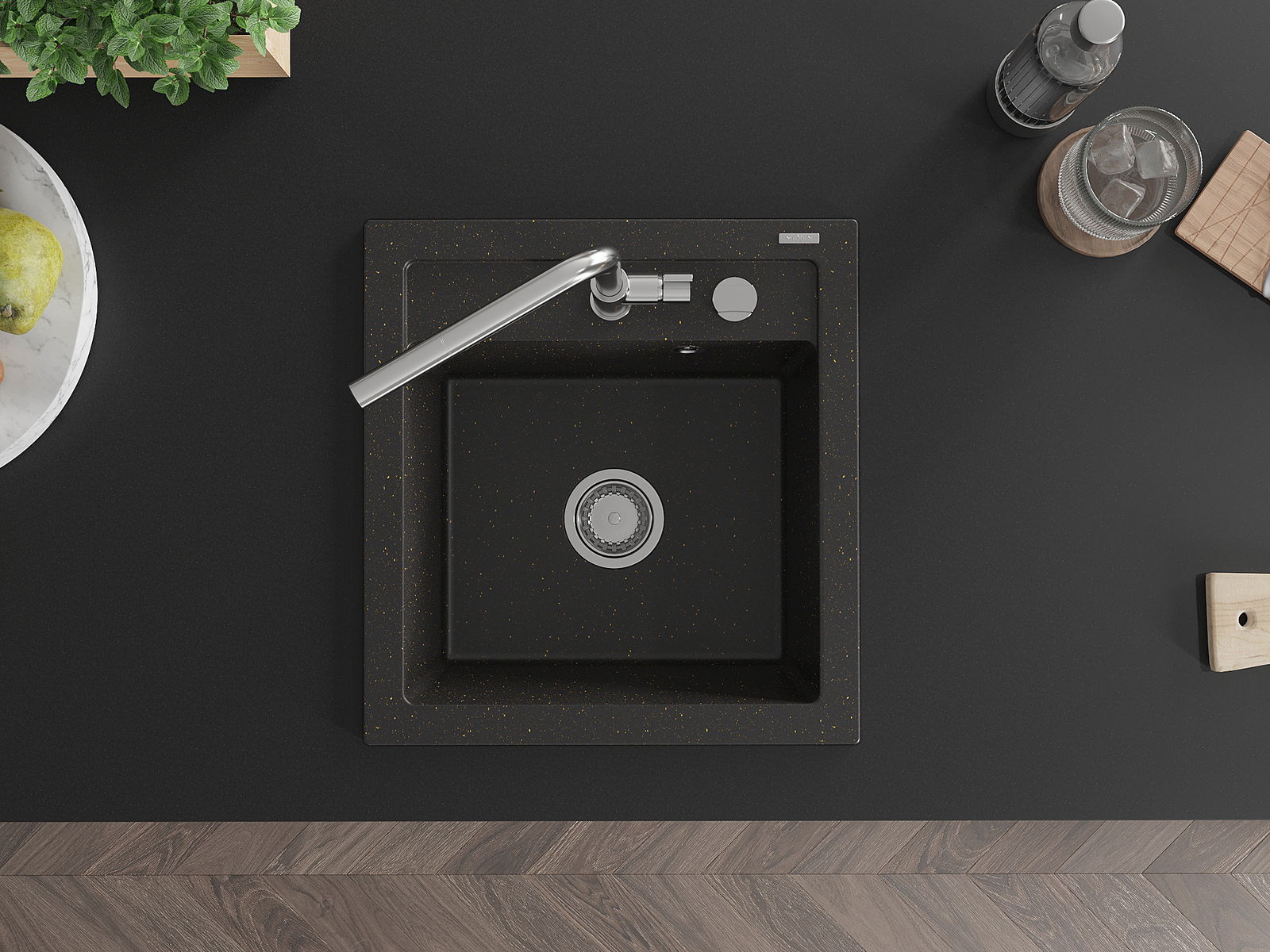 Mexen Vito fregadero de granito de 1 cubeta con grifo de cocina Flora, negro/dorado metálico - 6503-75-670401-00
