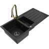 Mexen Andres fregadero de granito de 1,5 senos con escurridor y grifo de cocina Elia, negro/dorado metálico