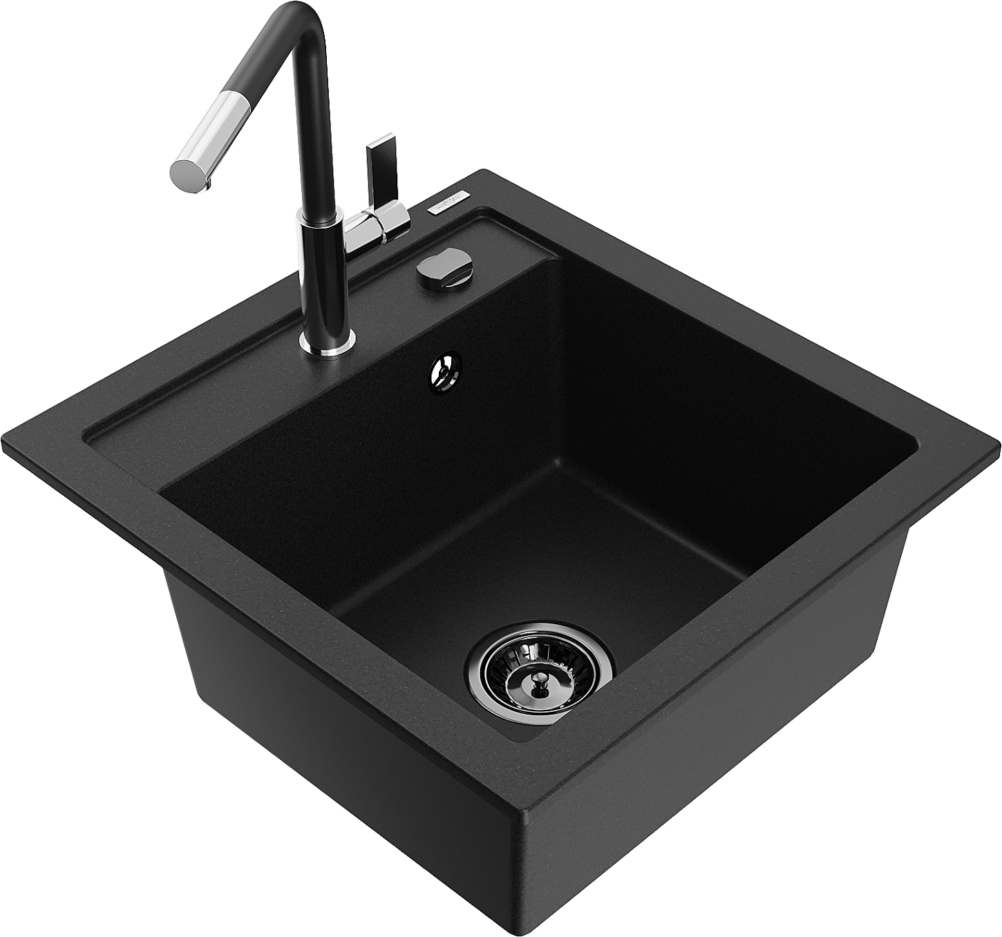 Mexen Vito fregadero de granito de 1 cubeta con grifo de cocina Flora, negro - 6503-77-670401-07-B