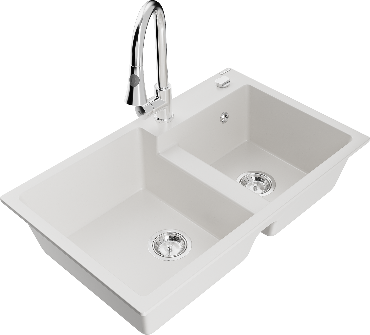 Mexen Tomas fregadero de granito de 2 senos con grifo de cocina Elia, blanco - 6516-20-670101-00