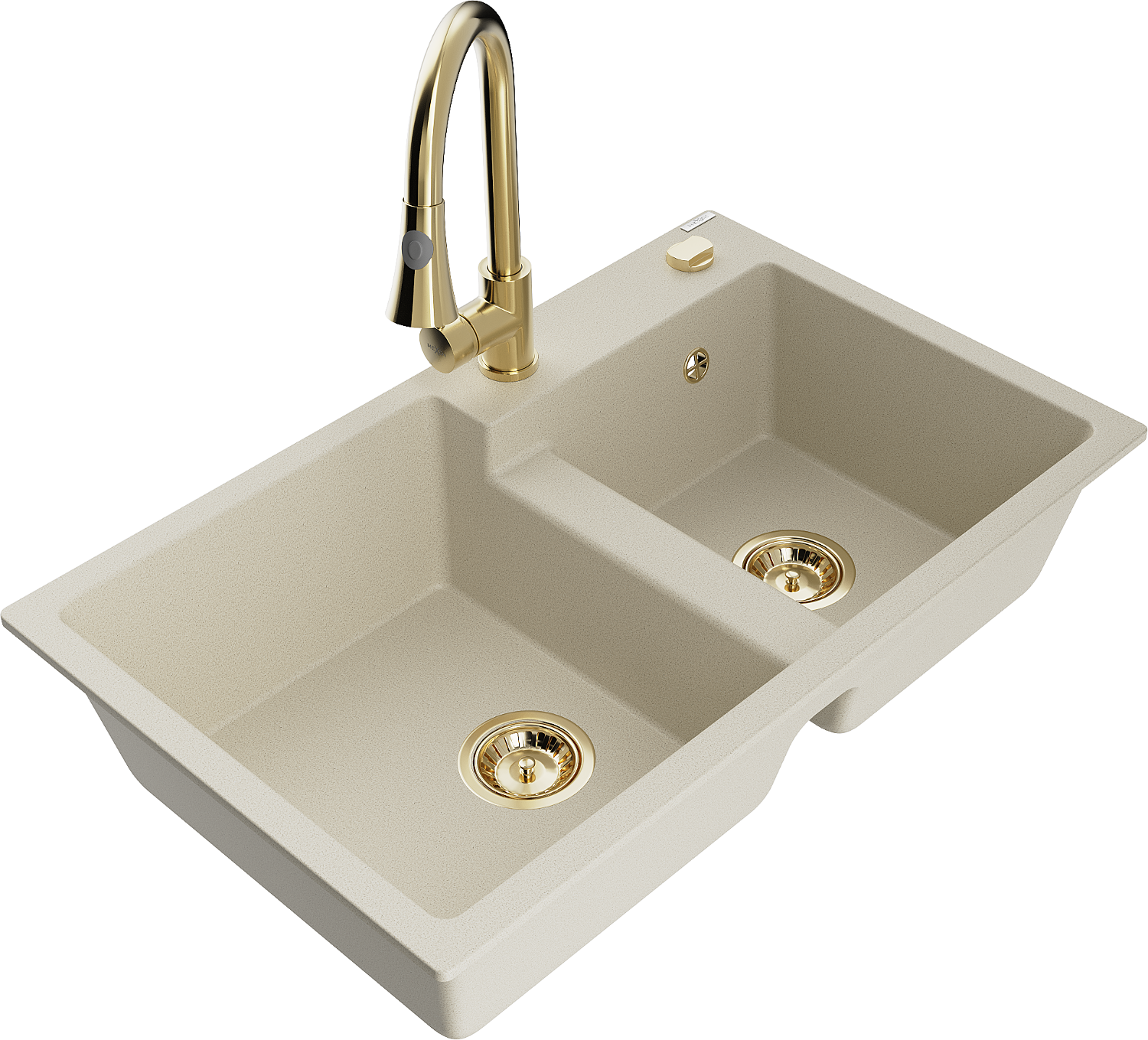 Mexen Tomas fregadero de granito de 2 senos con grifo de cocina Elia, beige - 6516-69-670101-50
