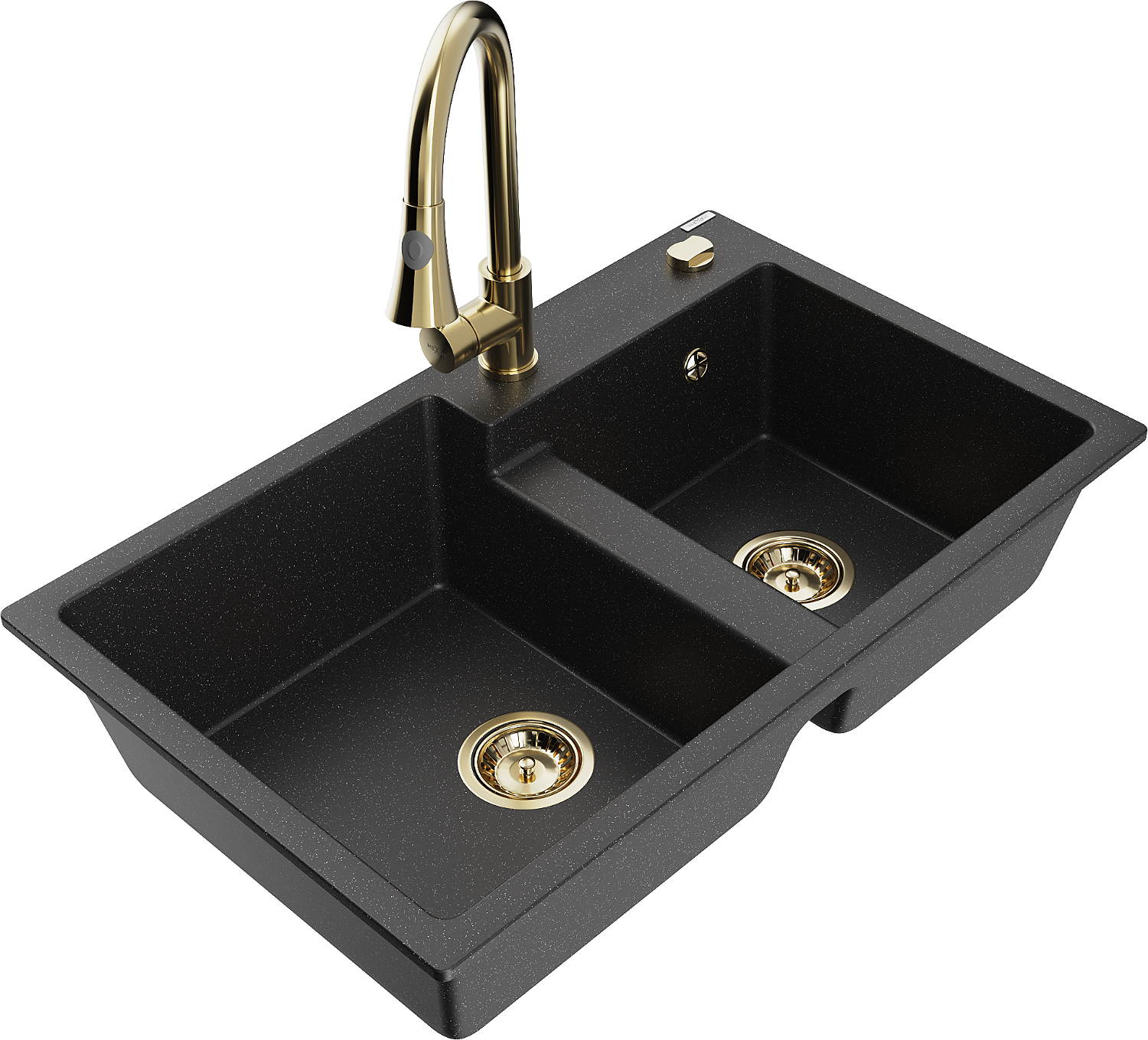 Mexen Tomas fregadero de granito de 2 senos con grifo de cocina Elia, negro/metalizado plateado - 6516-73-670101-50