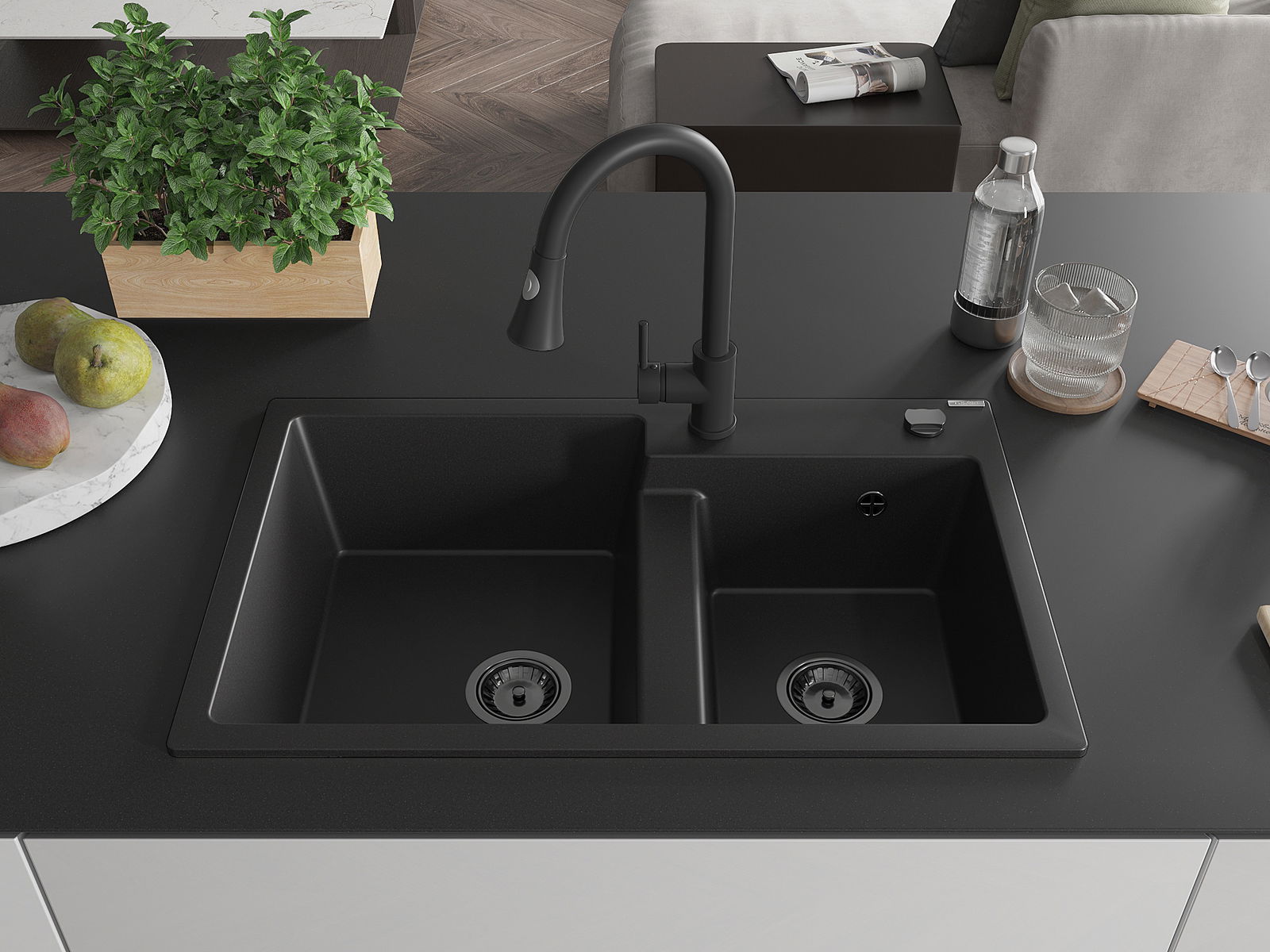 El fregadero está hecho de granito de alta calidad. Constituye un complemento elegante y, sobre todo, práctico para cualquier cocina, independientemente de su estilo. La alta calidad y durabilidad del granito aseguran un uso durante muchos años.