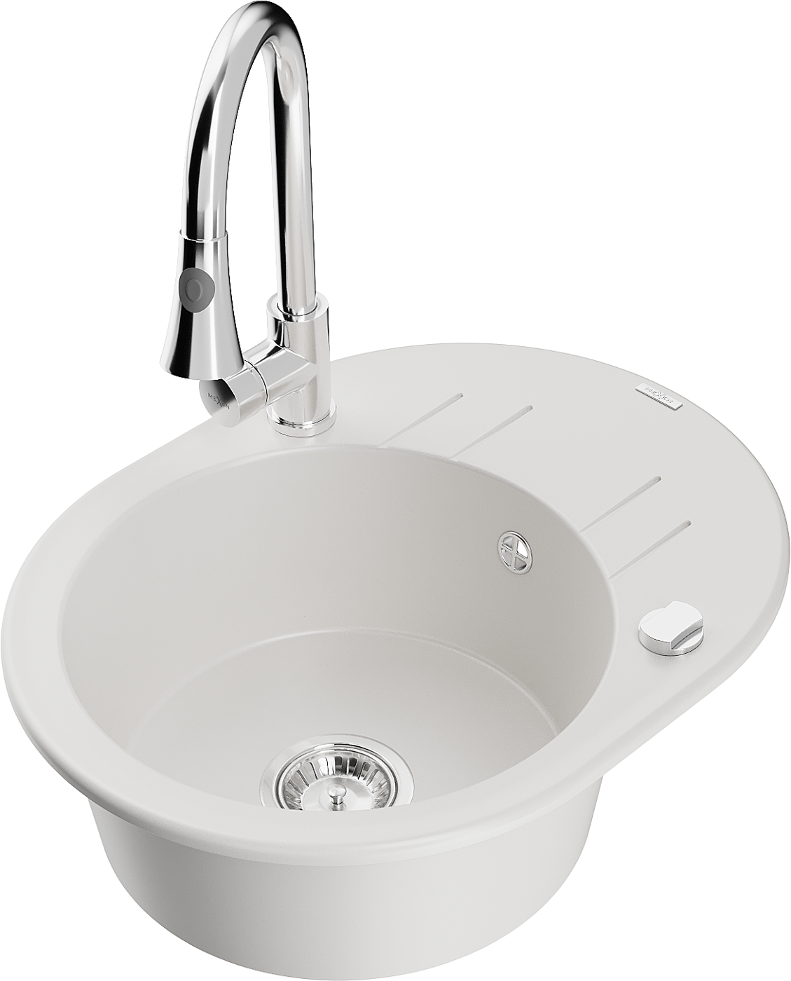 Mexen Kevin fregadero de granito de 1 cubeta con escurridor y grifo de cocina Elia, blanco - 6517-20-670101-00