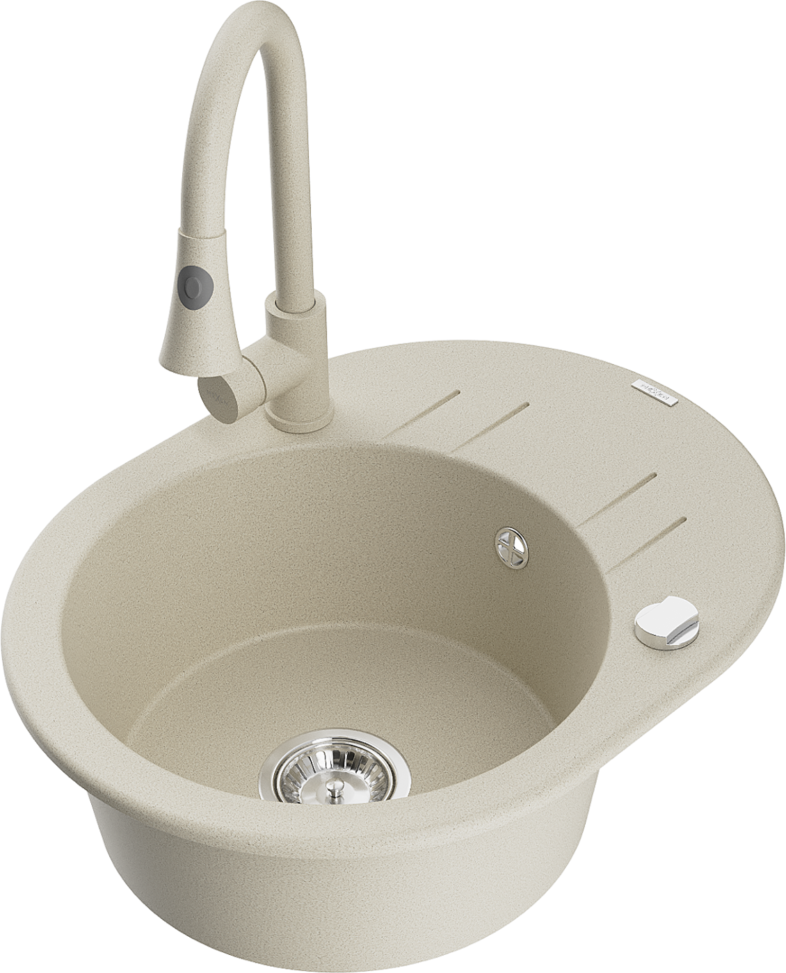 Mexen Kevin fregadero de granito de 1 cubeta con escurridor y grifo de cocina Elia, beige - 6517-69-670101-69