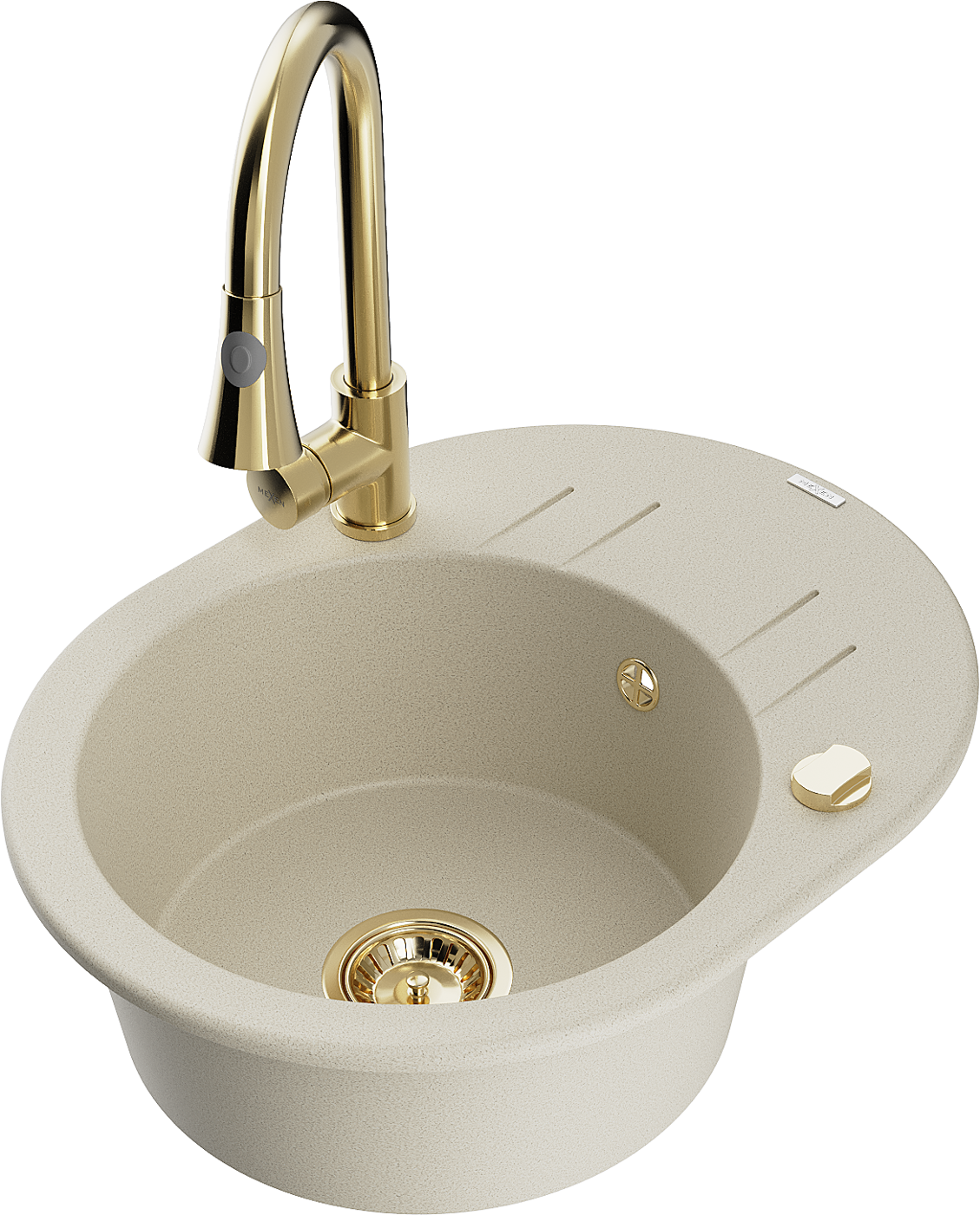 Mexen Kevin fregadero de cocina de granito de 1 cubeta con escurridor y grifo de cocina Elia, beige - 6517-69-670101-50