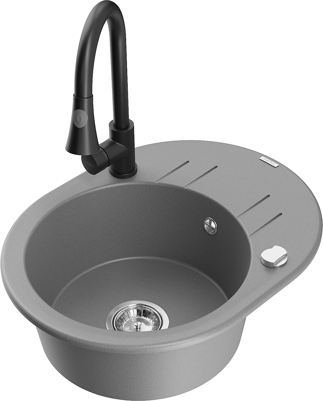 Mexen Kevin fregadero de granito de 1 cubeta con escurridor y grifo de cocina Elia, gris - 6517-71-670101-70