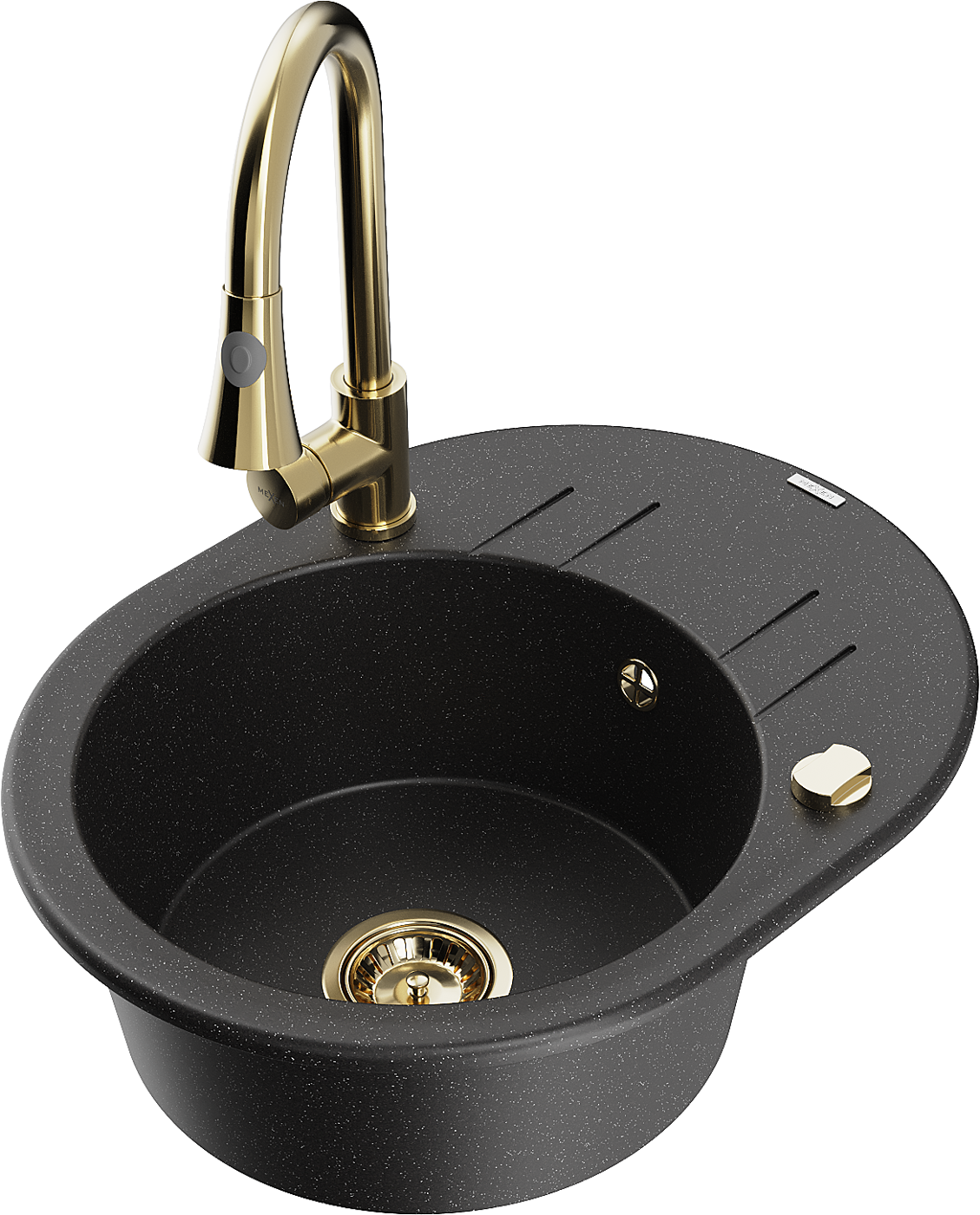 Mexen Kevin fregadero de granito de 1 seno con escurridor y grifo de cocina Elia, negro/plateado metálico - 6517-73-670101-50