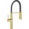 Las baterías con caño de silicona y soporte de latón son una solución práctica en la cocina. Su flexibilidad permite un giro de 360°, lo que facilita en gran medida el enjuague de los platos, la limpieza del fregadero y el llenado de un florero o una olla con agua.