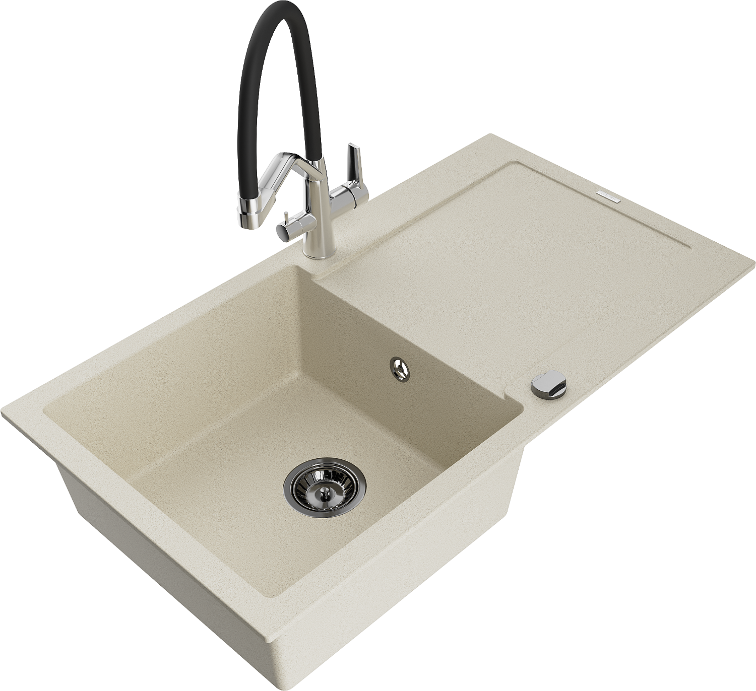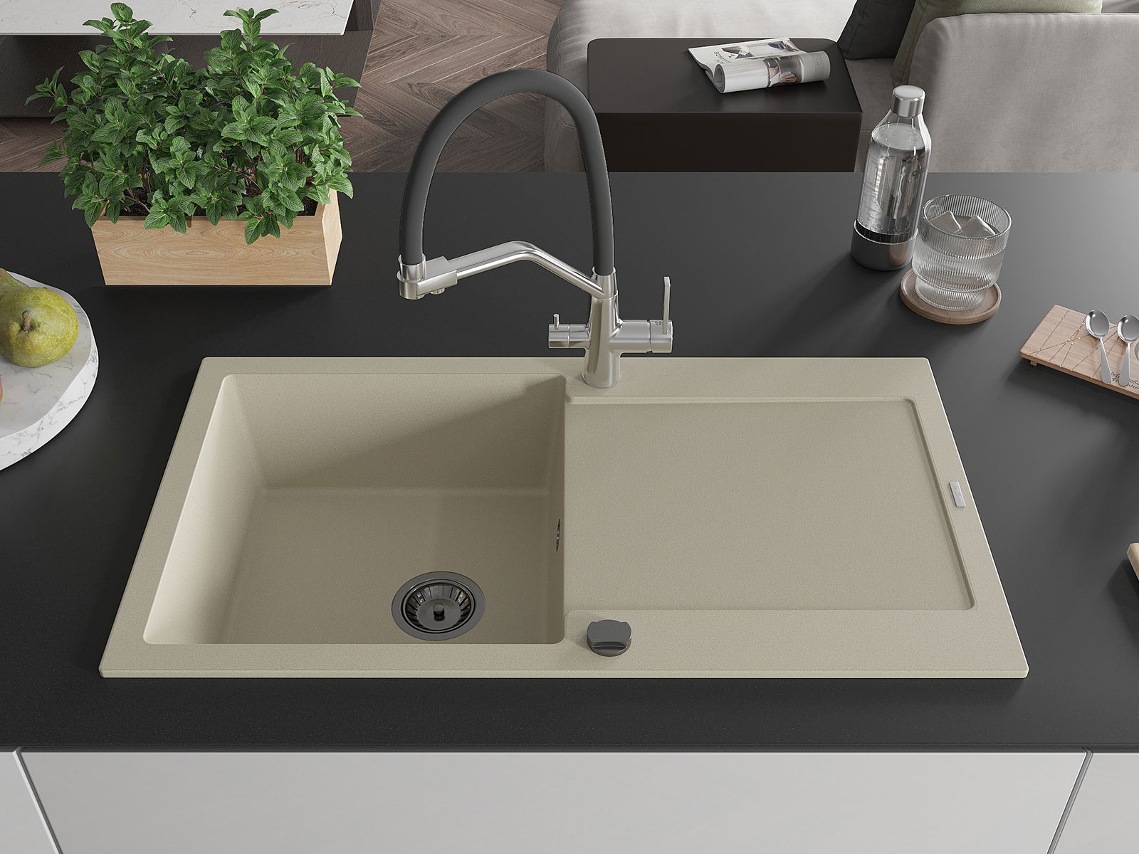 El fregadero está hecho de granito de alta calidad. Constituye un complemento elegante y, sobre todo, práctico para cualquier cocina, independientemente de su estilo. La alta calidad y durabilidad del granito aseguran un uso durante muchos años.