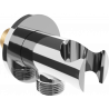 La conexión angular está equipada con un soporte para el mango de ducha. Es una solución práctica y conveniente que permite ahorrar espacio y facilita el uso diario al proporcionar un acceso rápido al mango de ducha.