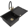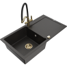 Mexen Leo fregadero de granito de 1 tazón con escurridor y grifo de cocina Duo, negro/metalizado plateado - 6501-73-671701-57-G
