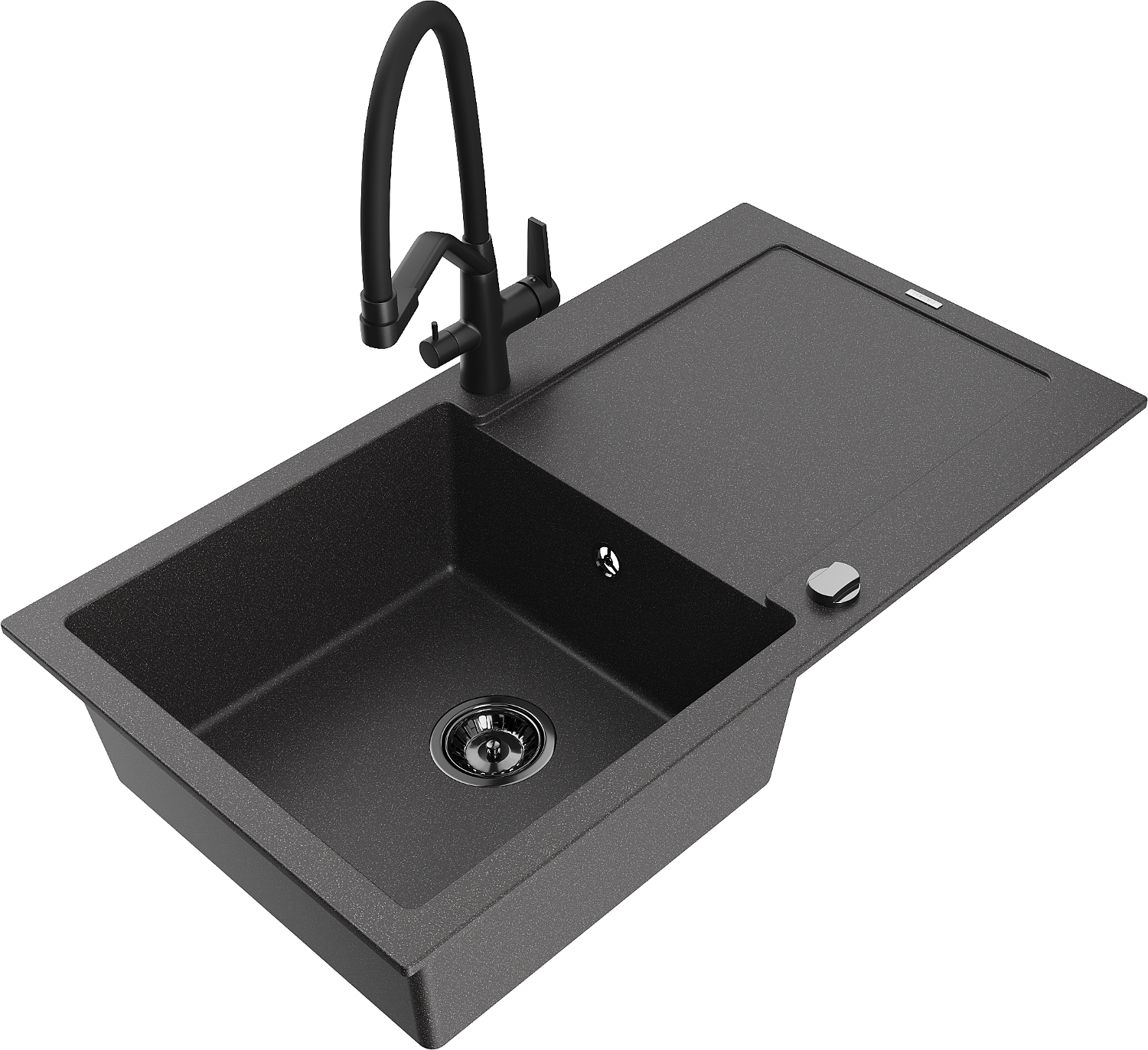El fregadero está hecho de granito de alta calidad. Constituye un complemento elegante y, sobre todo, práctico para cualquier cocina, independientemente de su estilo. La alta calidad y durabilidad del granito aseguran un uso durante muchos años.
