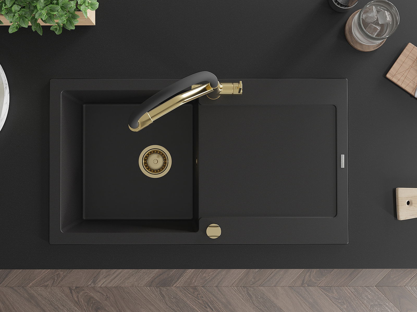 Mexen Leo fregadero de granito de 1 seno con escurridor y grifo de cocina Duo, negro - 6501-77-671701-57-G