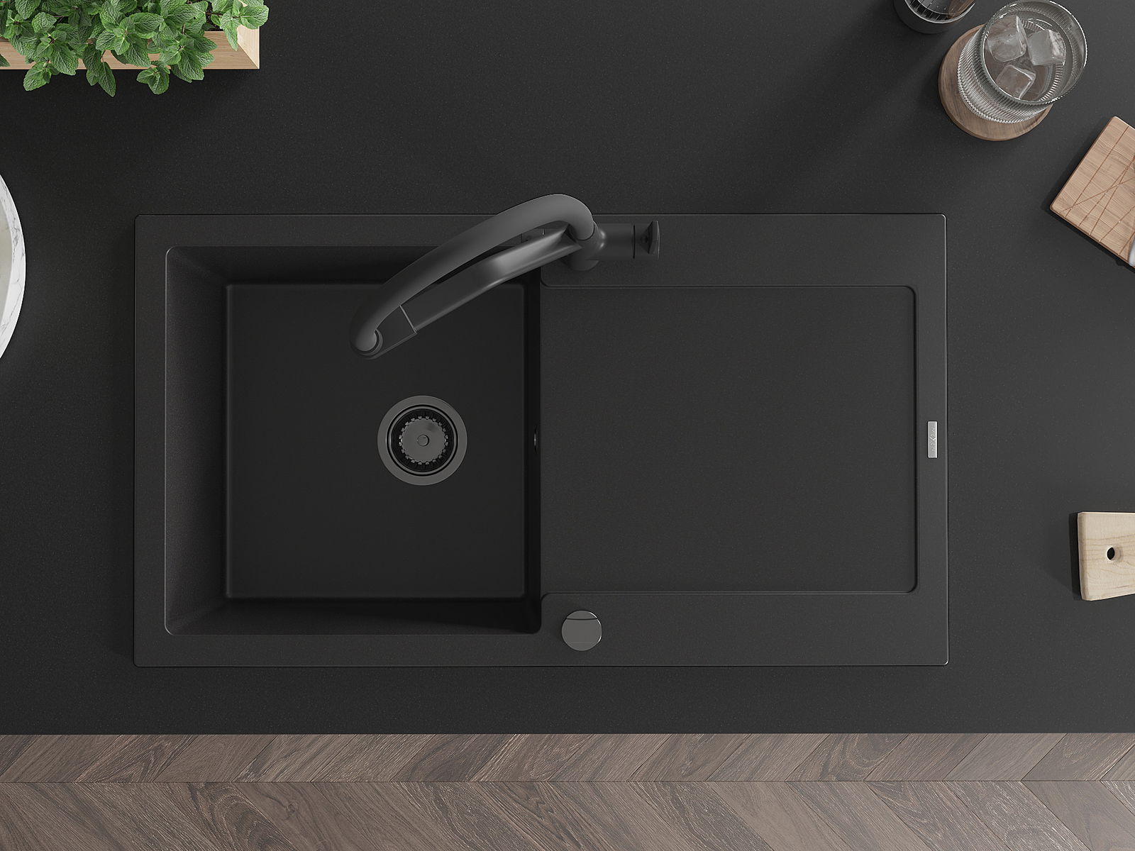 El fregadero está hecho de granito de alta calidad. Constituye un complemento elegante y, sobre todo, práctico para cualquier cocina, independientemente de su estilo. La alta calidad y durabilidad del granito aseguran un uso durante muchos años.