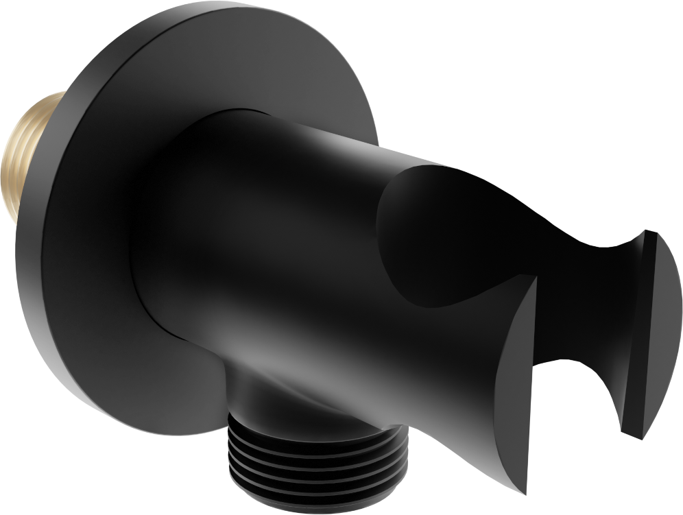 La conexión angular está equipada con un soporte para el mango de ducha. Es una solución práctica y conveniente que permite ahorrar espacio y facilita el uso diario al proporcionar un acceso rápido al mango de ducha.