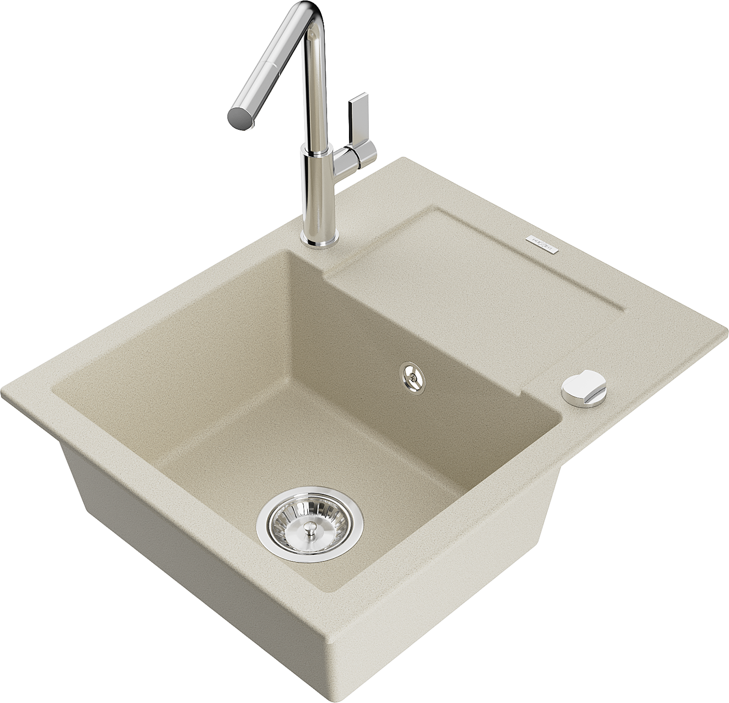 Mexen Enzo fregadero de granito de 1 seno con escurridor y grifo de cocina Flora, beige - 6506-69-670401-00