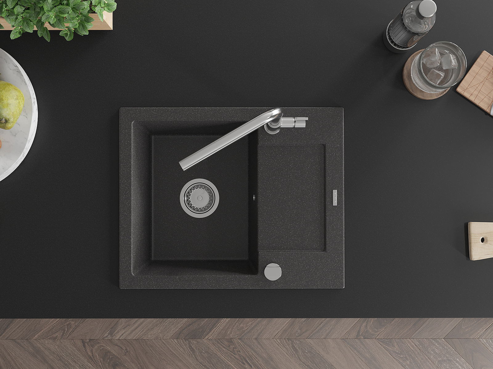 El fregadero está hecho de granito de alta calidad. Constituye un complemento elegante y, sobre todo, práctico para cualquier cocina, independientemente de su estilo. La alta calidad y durabilidad del granito aseguran un uso durante muchos años.