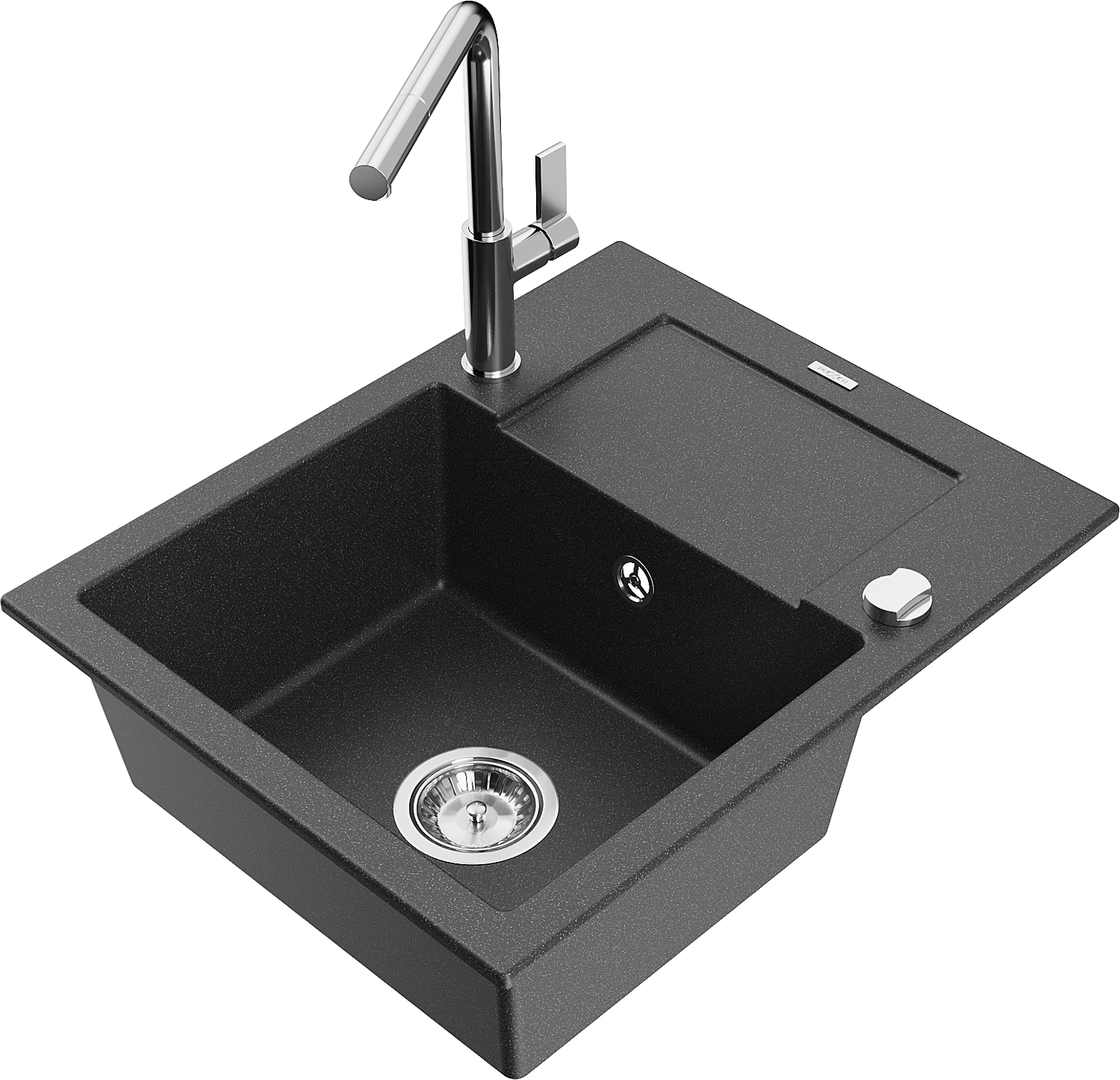 Mexen Enzo fregadero de granito de 1 cámara con escurridor y grifo de cocina Flora, negro salpicado - 6506-76-670401-00