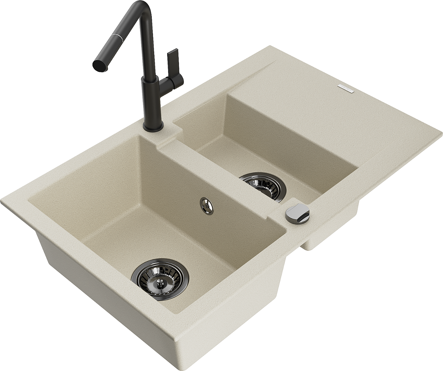 El fregadero está hecho de granito de alta calidad. Constituye un complemento elegante y, sobre todo, práctico para cualquier cocina, independientemente de su estilo. La alta calidad y durabilidad del granito aseguran un uso durante muchos años.
