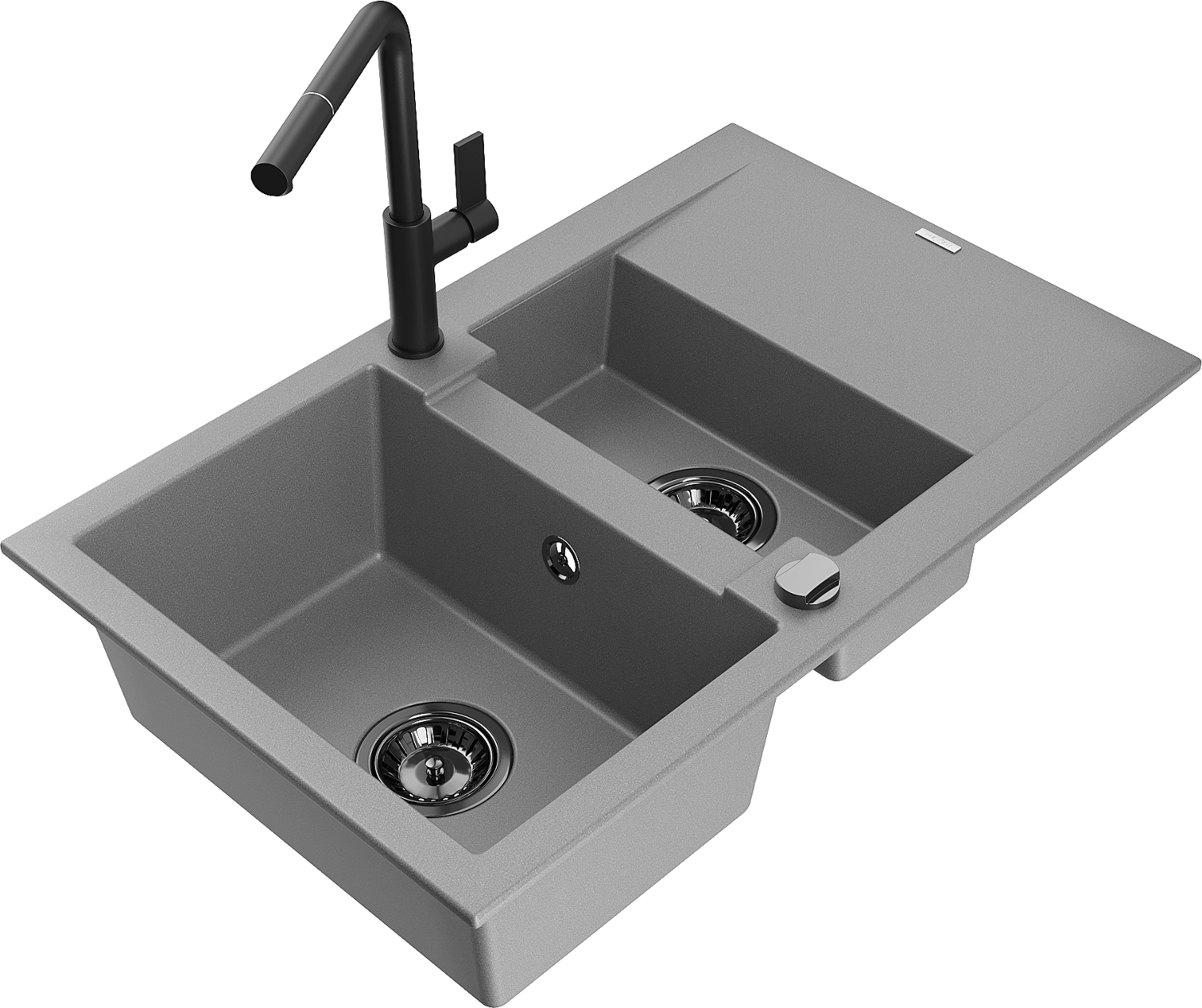El fregadero está hecho de granito de alta calidad. Es un complemento elegante y, sobre todo, práctico para cualquier cocina, independientemente de su estilo. La alta calidad y durabilidad del granito aseguran un uso prolongado durante años.
