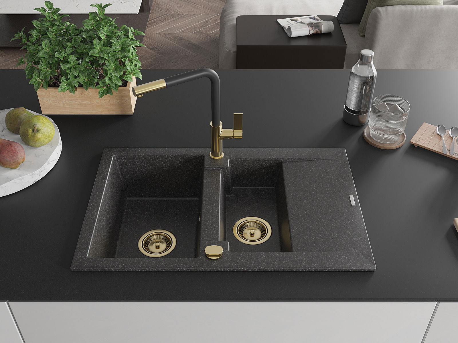 El fregadero está hecho de granito de alta calidad. Constituye un complemento elegante y, sobre todo, práctico para cualquier cocina, independientemente de su estilo. La alta calidad y durabilidad del granito aseguran un uso durante muchos años.
