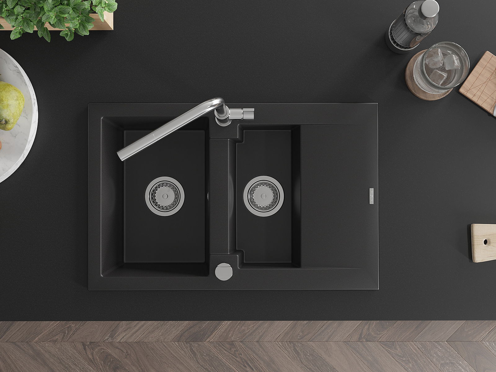 El fregadero está hecho de granito de alta calidad. Constituye un complemento elegante y, sobre todo, práctico para cualquier cocina, independientemente de su estilo. La alta calidad y durabilidad del granito aseguran un uso durante muchos años.