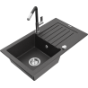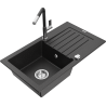 Mexen Pablo fregadero de granito de 1 cubeta con escurridor y grifo de cocina Flora, negro - 6510-77-670401-07