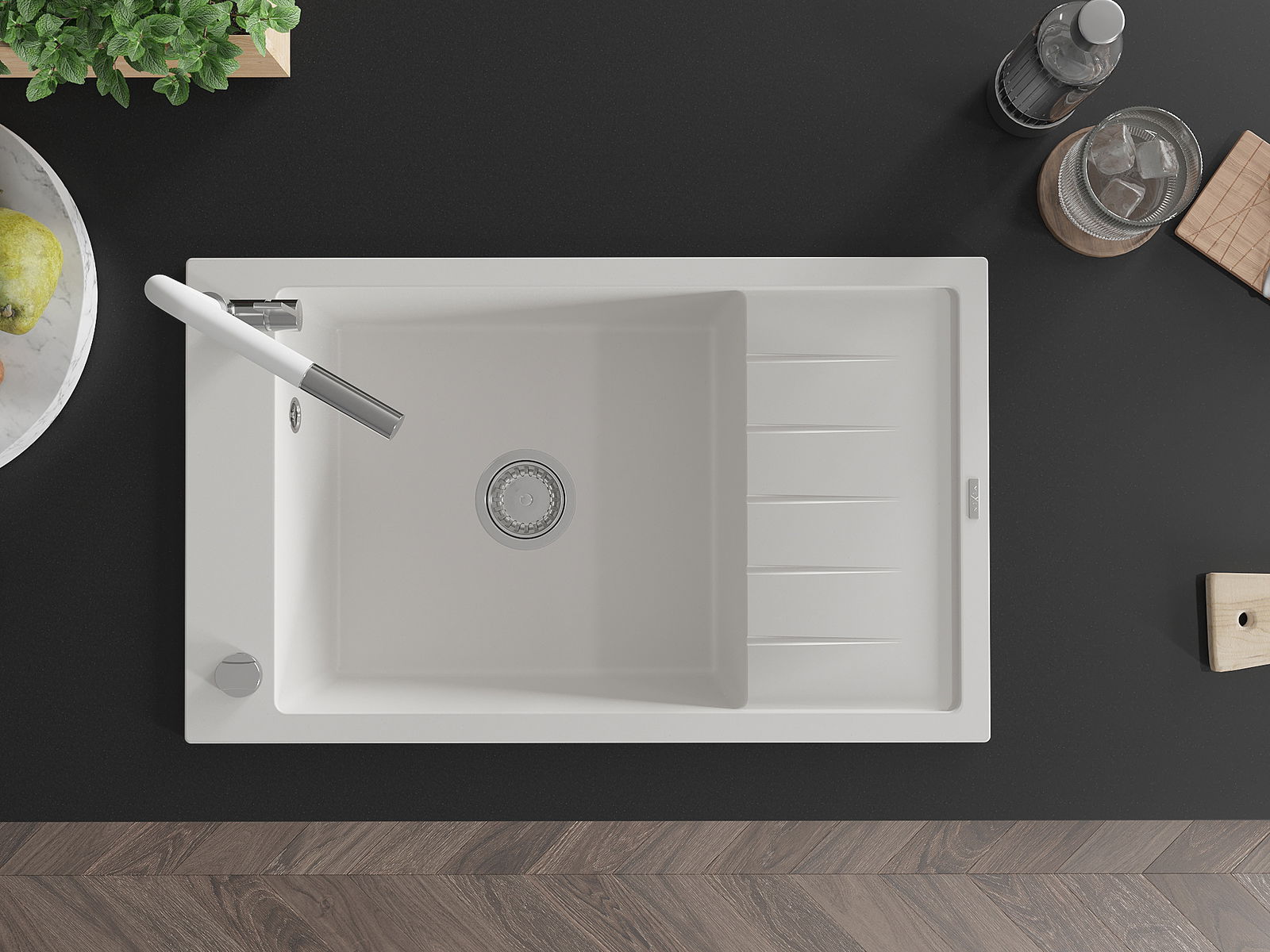 El fregadero está hecho de granito de alta calidad. Constituye un complemento elegante y, sobre todo, práctico para cualquier cocina, independientemente de su estilo. La alta calidad y durabilidad del granito aseguran un uso durante muchos años.
