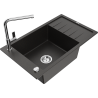 Mexen Elias fregadero de granito de 1 cubeta con escurridor y grifo de cocina Flora, negro/plateado metálico