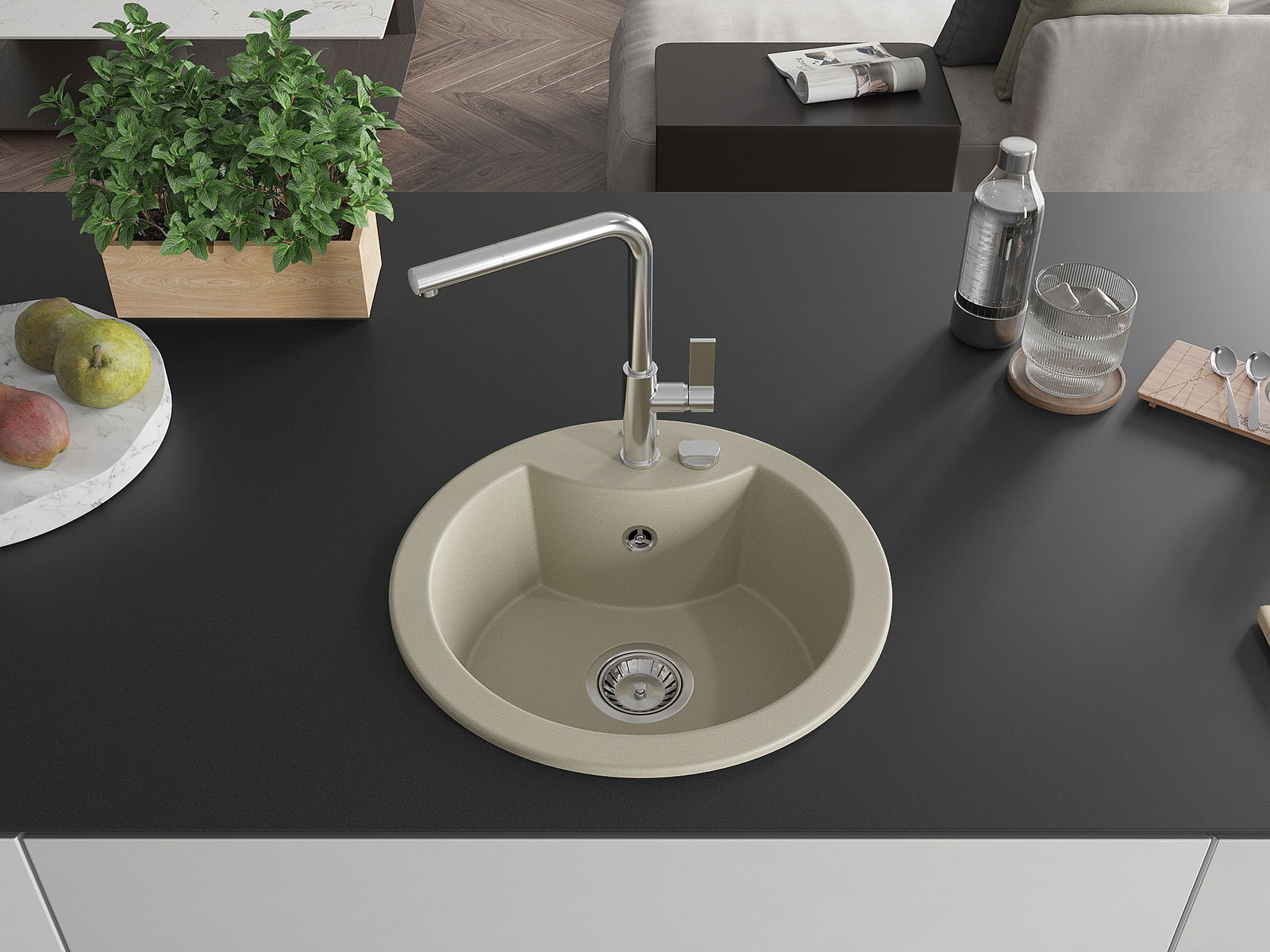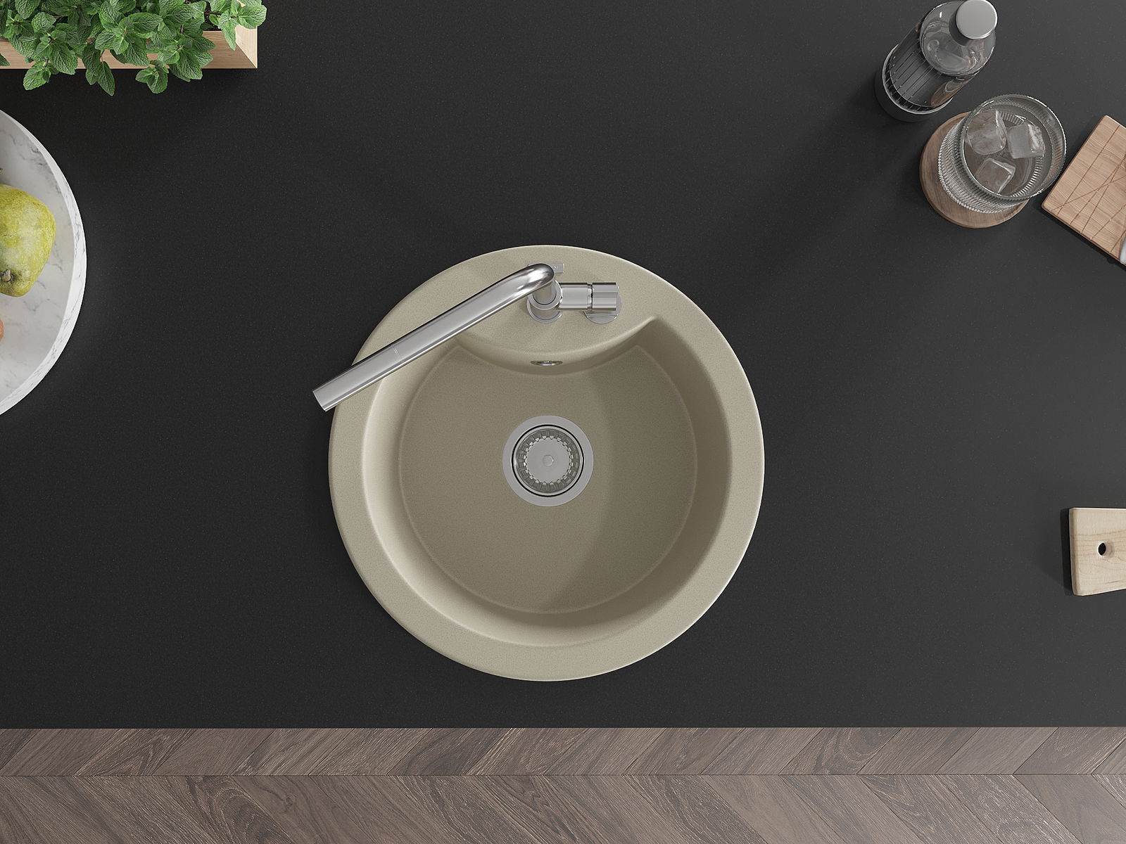 El fregadero está hecho de granito de alta calidad. Constituye un complemento elegante y, sobre todo, práctico para cualquier cocina, independientemente de su estilo. La alta calidad y durabilidad del granito aseguran un uso durante muchos años.