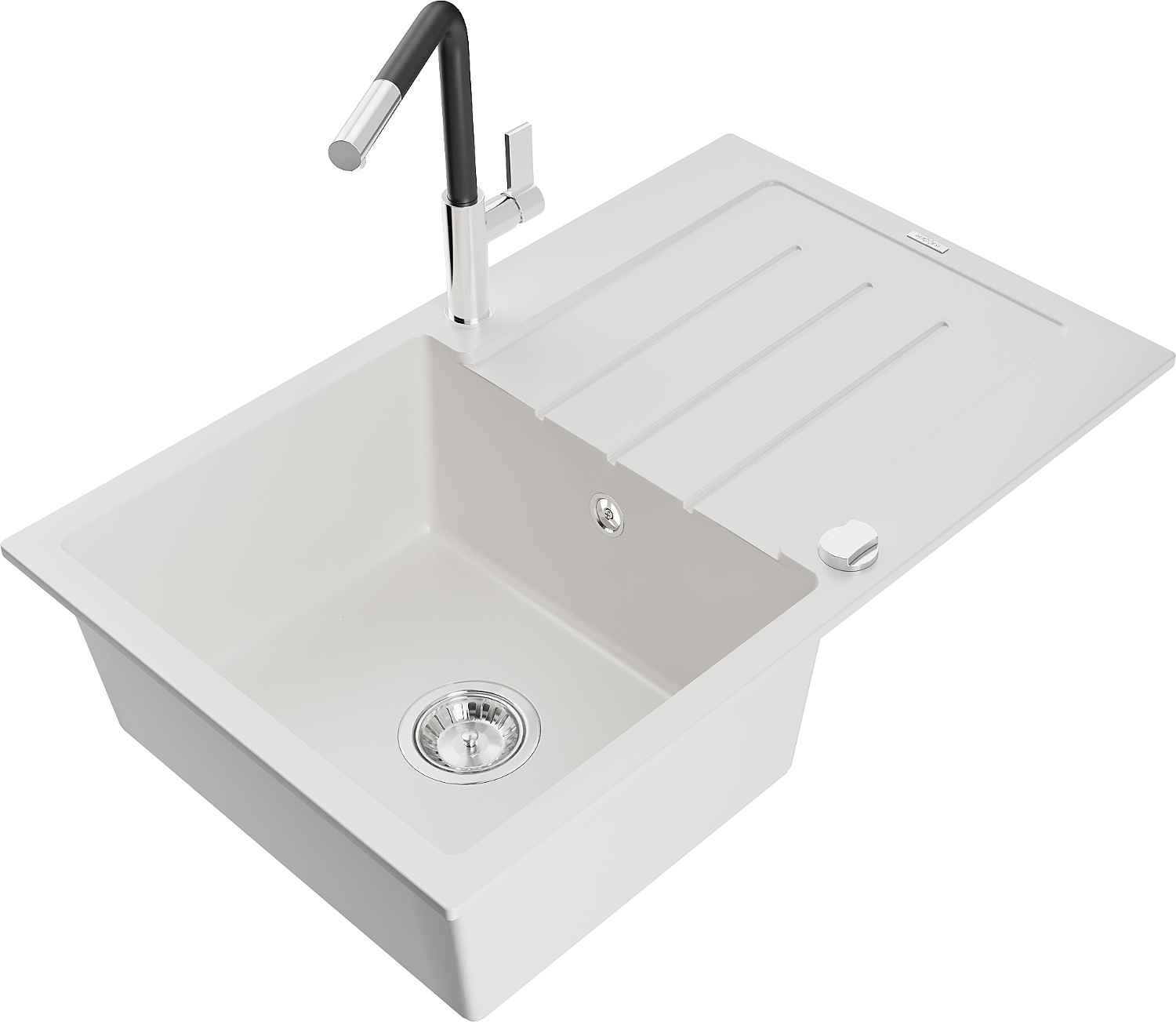 Mexen Bruno fregadero de granito de 1 cubeta con escurridor y grifo de cocina Flora, blanco - 6513-20-670401-07