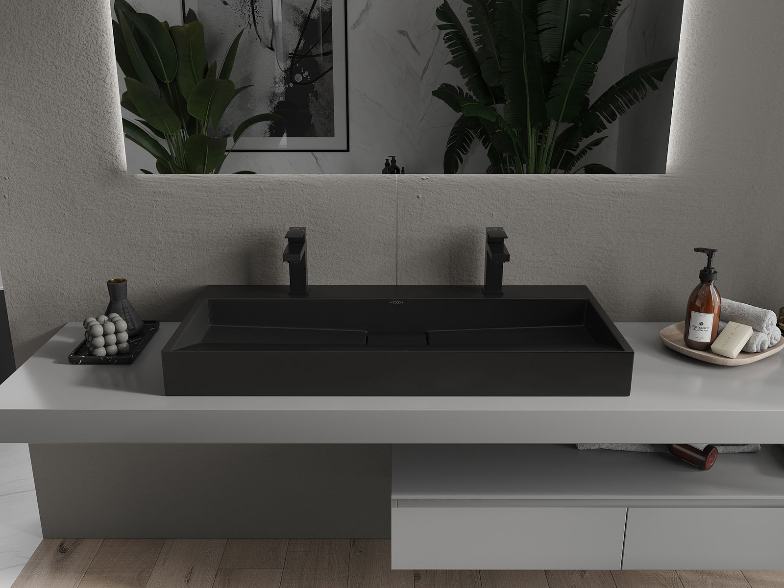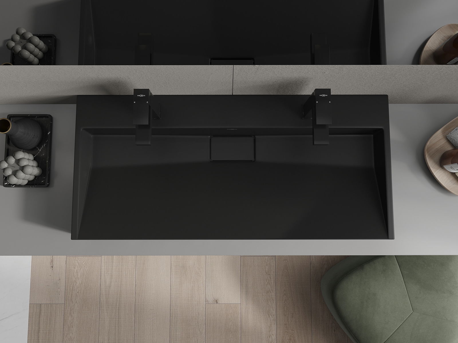 Mexen Ava lavabo sobre encimera de conglomerado 2/O 100 x 46 cm, negro - 23011072