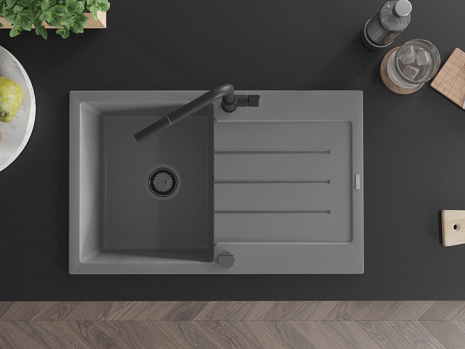 El fregadero está hecho de granito de alta calidad. Constituye un complemento elegante y, sobre todo, práctico para cualquier cocina, independientemente de su estilo. La alta calidad y durabilidad del granito aseguran un uso durante muchos años.