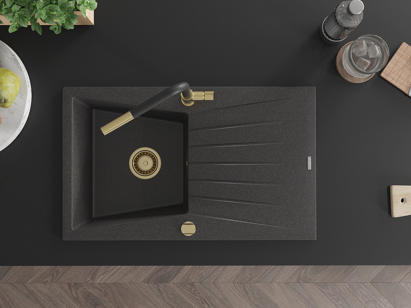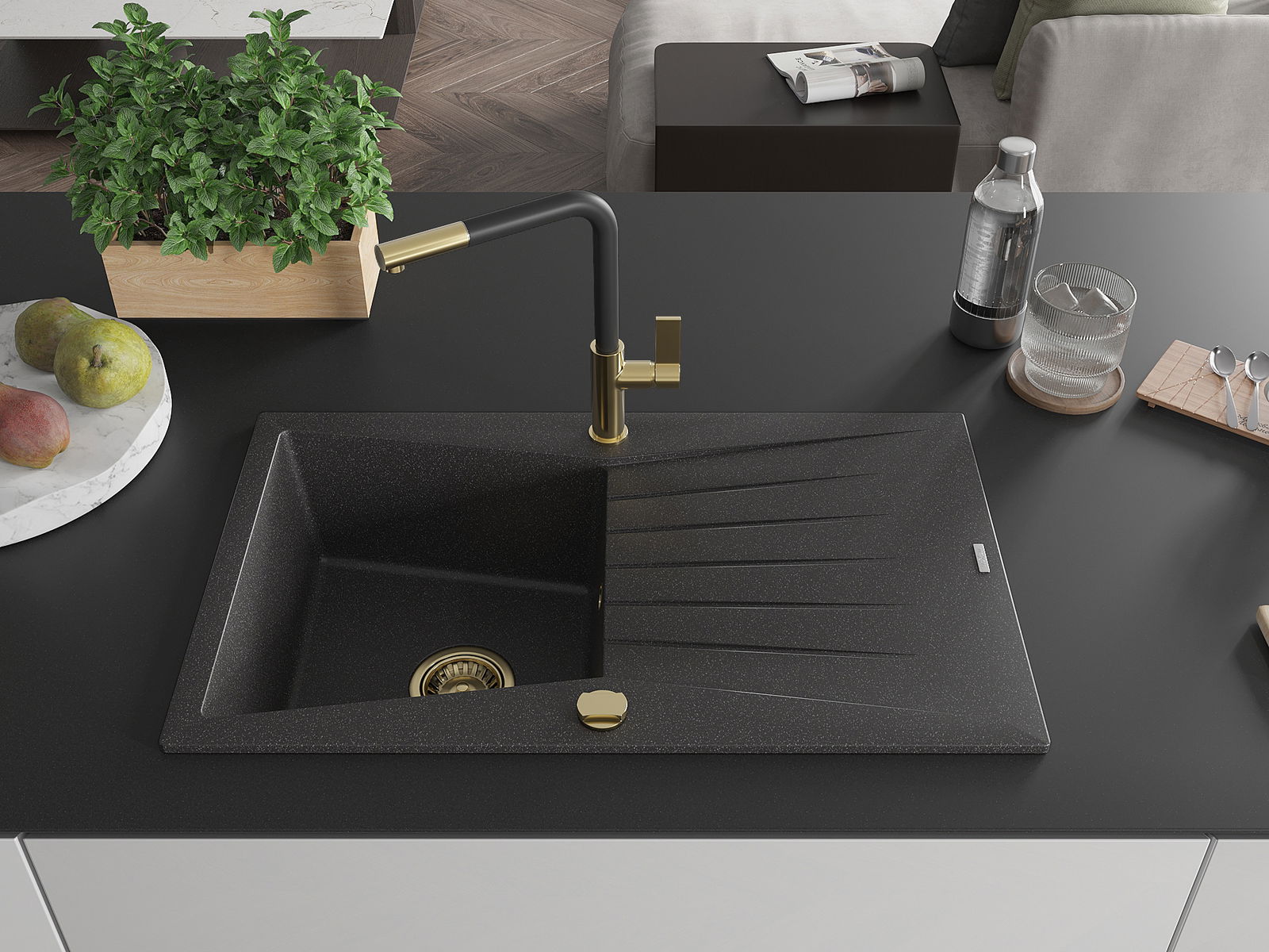 El fregadero está hecho de granito de alta calidad. Constituye un complemento elegante y, sobre todo, práctico para cualquier cocina, independientemente de su estilo. La alta calidad y durabilidad del granito aseguran un uso durante muchos años.