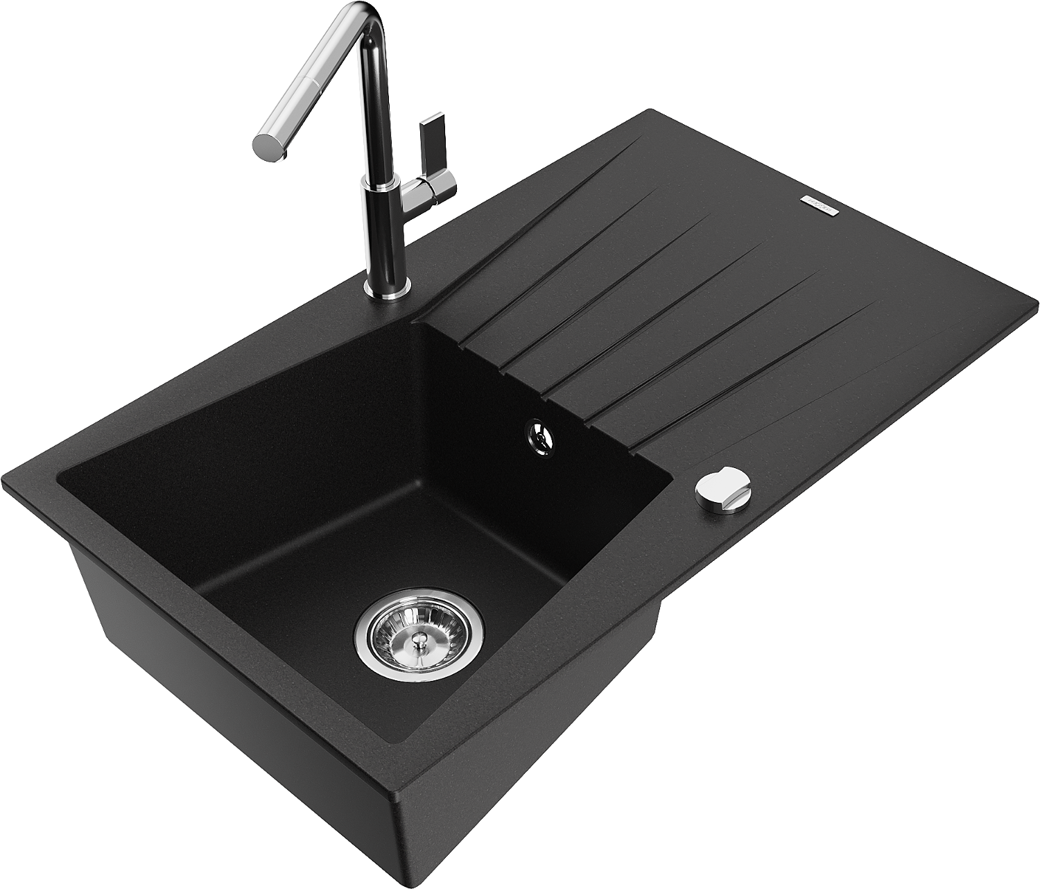 Mexen Cesar fregadero de granito de 1 seno con escurridor y grifo de cocina Flora, negro - 6514-77-670401-00