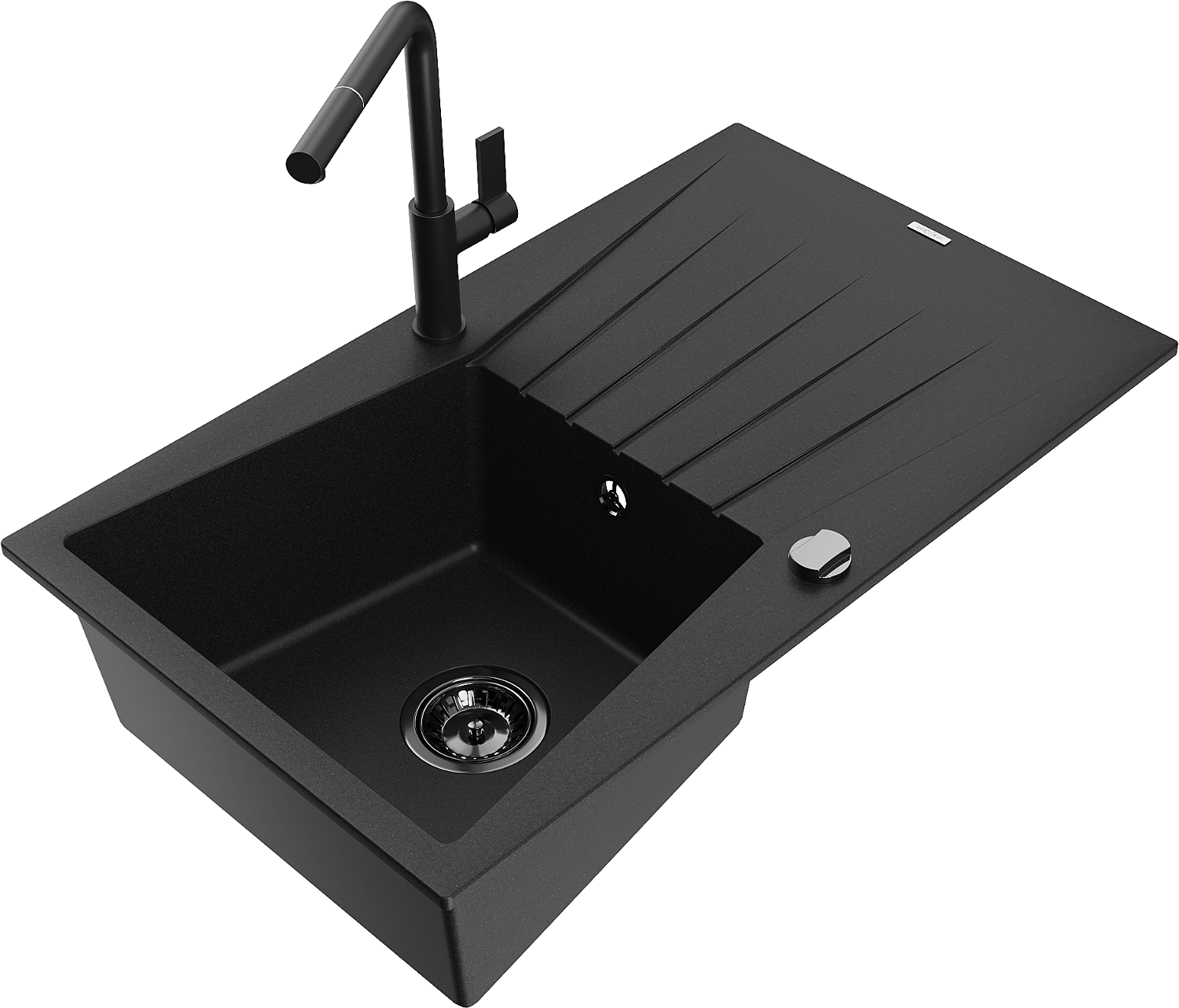 Mexen Cesar fregadero de granito de 1 seno con escurridor y grifo de cocina Flora, negro - 6514-77-670401-70-B