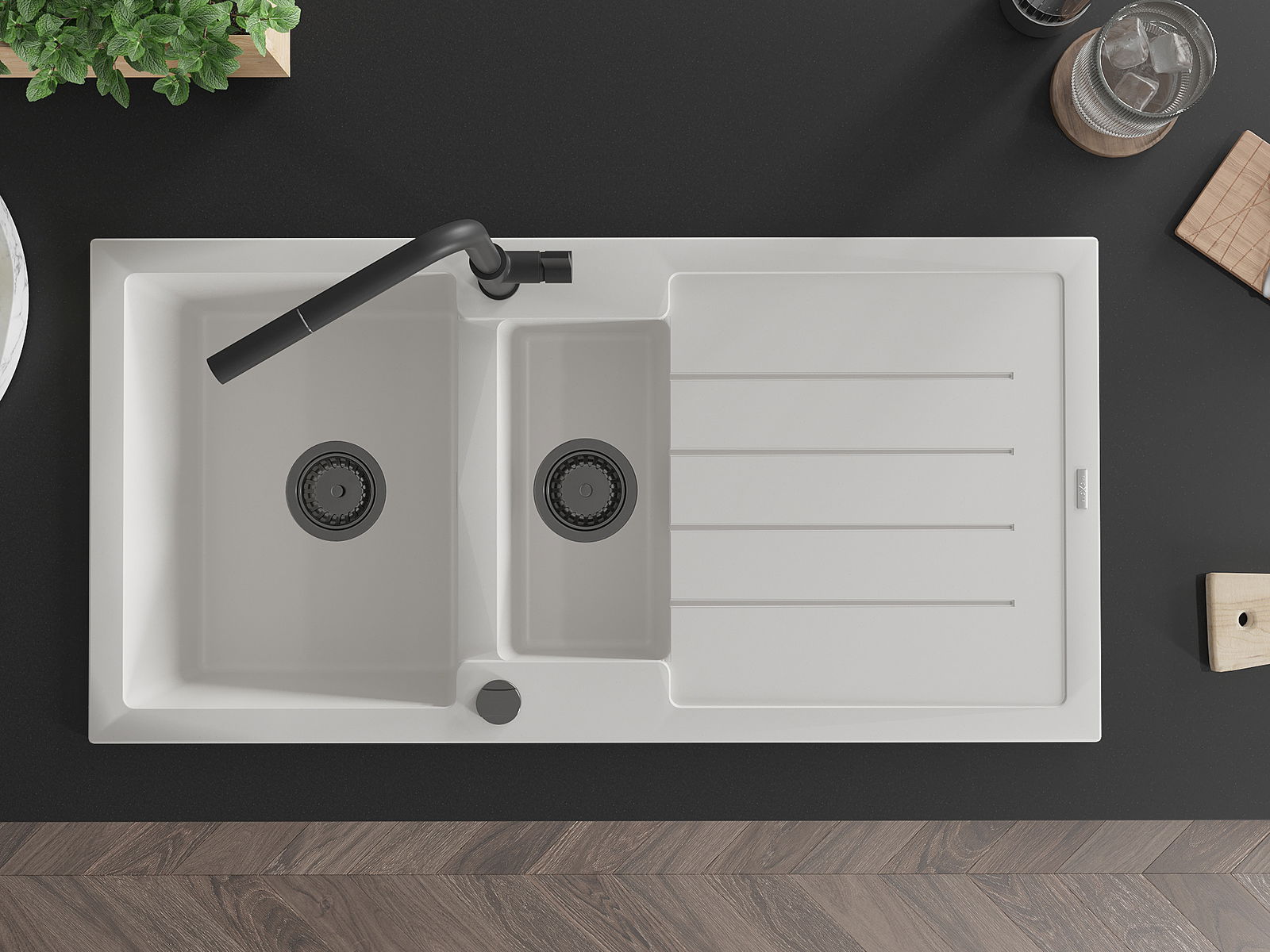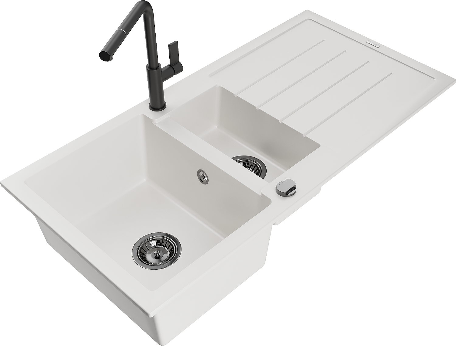 El fregadero está hecho de granito de alta calidad. Es un complemento elegante y, sobre todo, práctico para cualquier cocina, independientemente de su estilo. La alta calidad y durabilidad del granito aseguran un uso prolongado durante años.