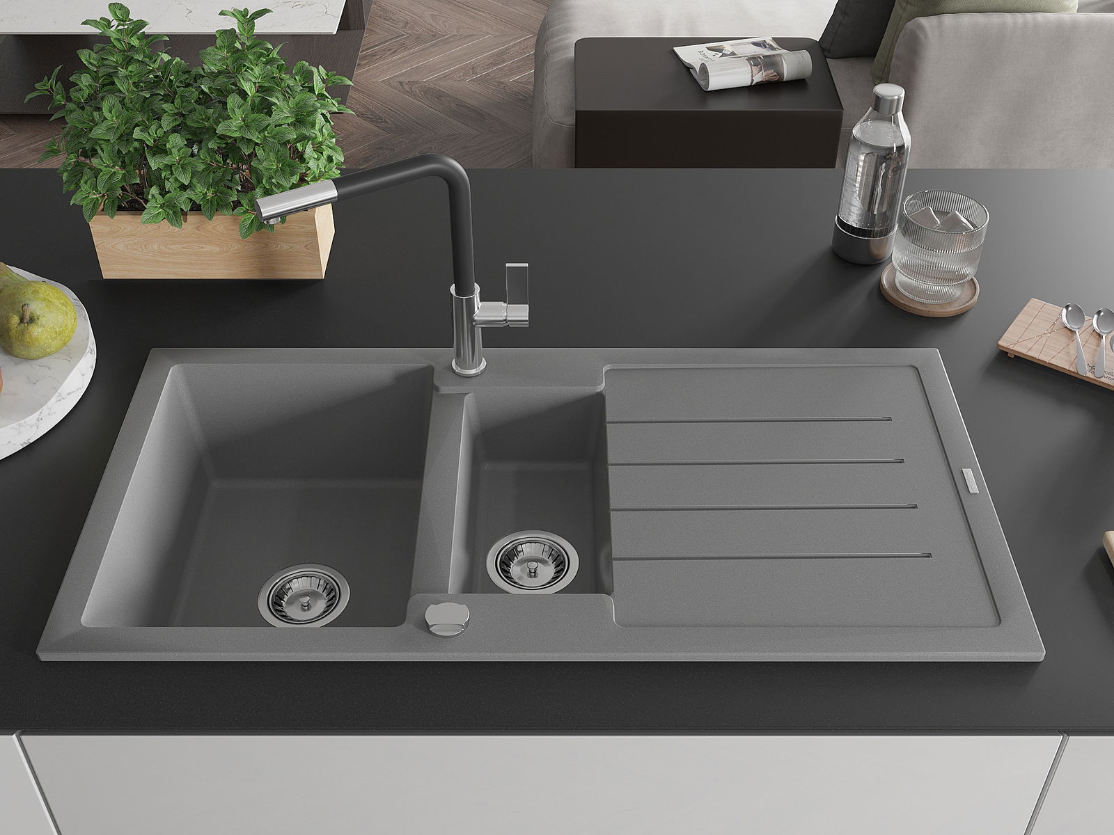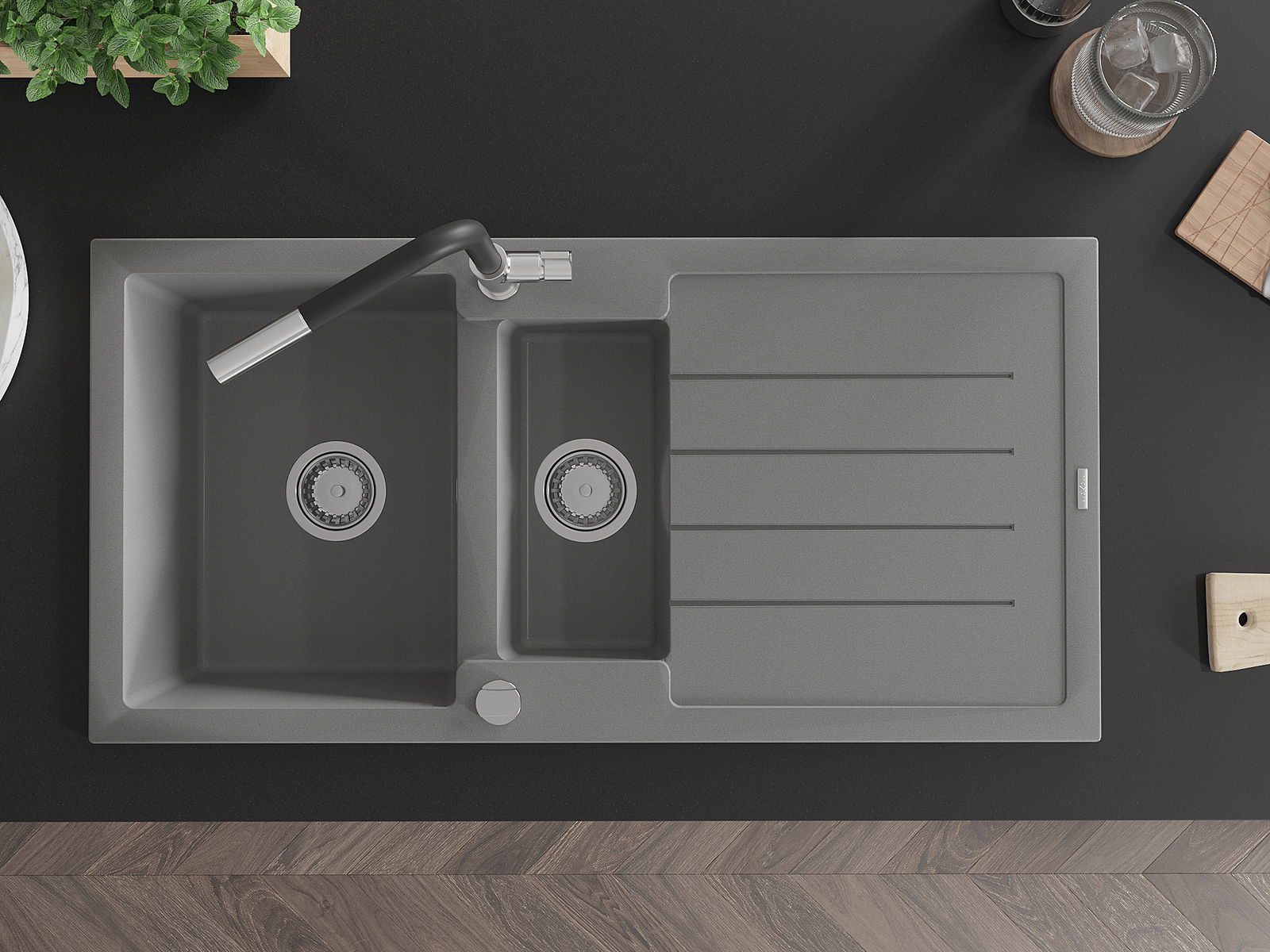 El fregadero está hecho de granito de alta calidad. Constituye un complemento elegante y, sobre todo, práctico para cualquier cocina, independientemente de su estilo. La alta calidad y durabilidad del granito aseguran un uso durante muchos años.