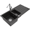 Mexen Andres fregadero de granito de 1,5 senos con escurridor y grifo de cocina Flora, negro moteado - 6515-76-670401-00